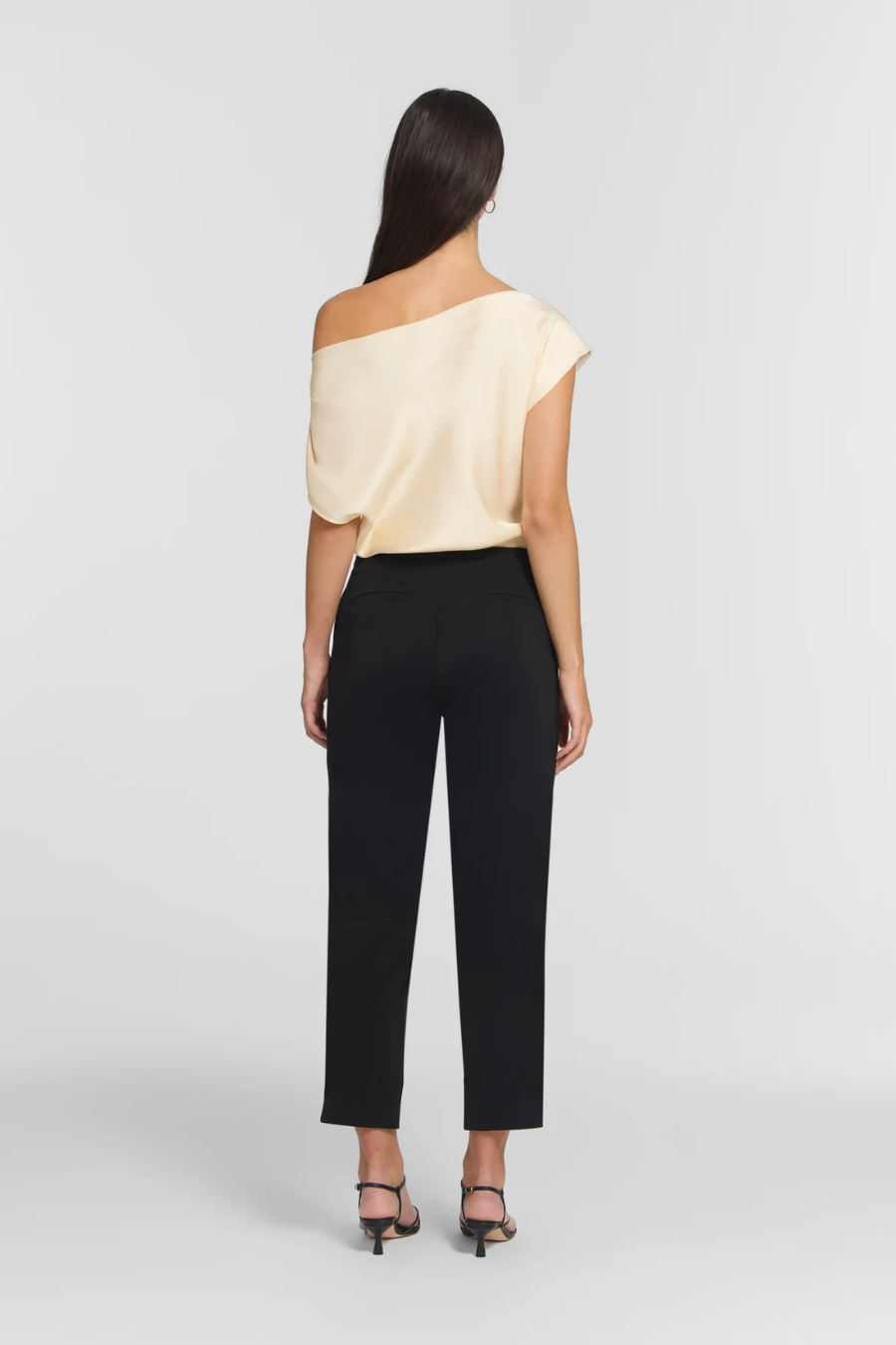 For the chic minimalist, the Lucida Capri is crafted in classic black for effortless everyday styling. Showcasing a high-rise silhouette and slim leg profile, it provides a flattering, foundational form. Complete with pockets and a front stitch down the leg, it balances modern sophistication with timeless ease.