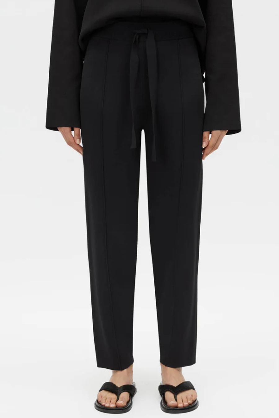 The Lyndon Knit Pant offers a refined design with a rib knit waistband and knitted drawcords for added comfort. Signature pin stitch detailing on the front legs enhances its modern, versatile appeal, while the fitted seat and slim leg provide a flattering silhouette. This essential piece is a practical addition to any wardrobe, effortlessly combining style and function.