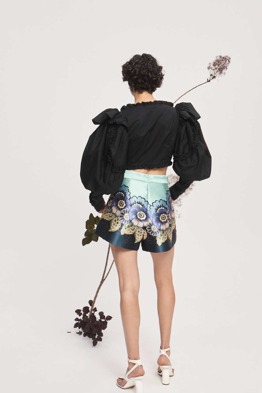 The Madalena Short by Alémais is a tailored mini short crafted from 88% recycled polyester and 12% polyester. Featuring a concealed zip opening and inseam pockets, it offers a sleek, polished look. Perfect for warm-weather styling, pair it with the matching Madalena Top or a crisp white tee for a chic ensemble