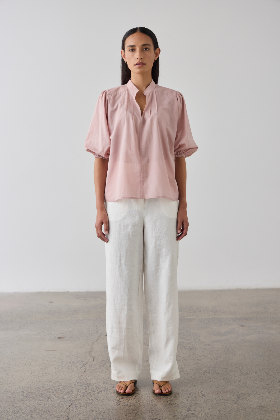 A flowy, lightweight design for hot summer days. Made from our ultra-soft cotton voile, the Maddie blouse is a minimal slip-on style with pleat accents and a gentle balloon sleeve for a relaxed yet stylish look.