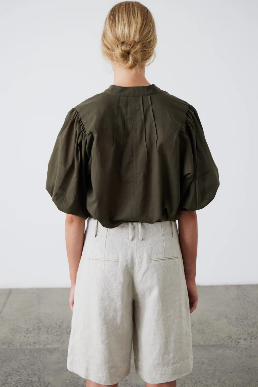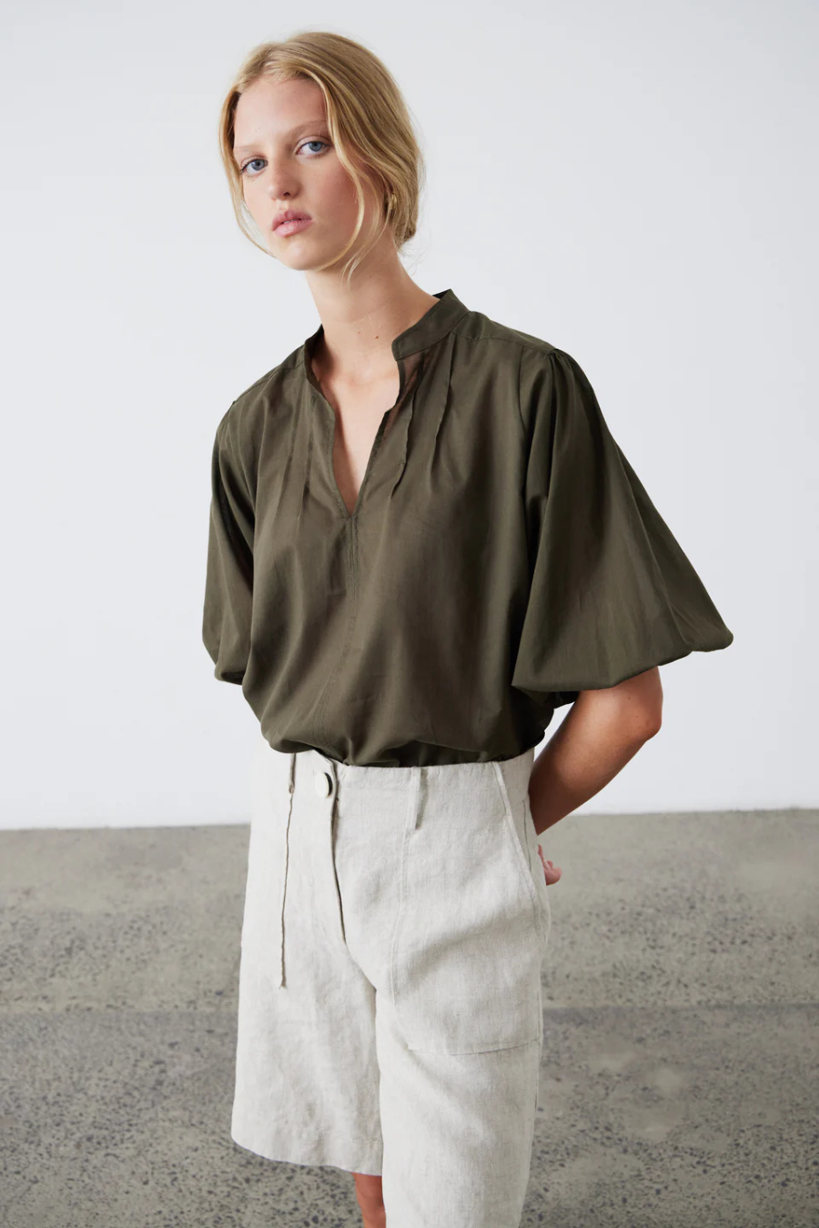 A flowy, lightweight design for hot summer days. Made from our ultra-soft cotton voile, the Maddie blouse is a minimal slip-on style with pleat accents and a gentle balloon sleeve for a relaxed yet stylish look.