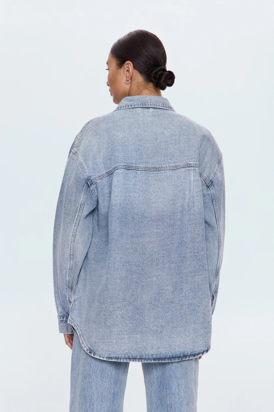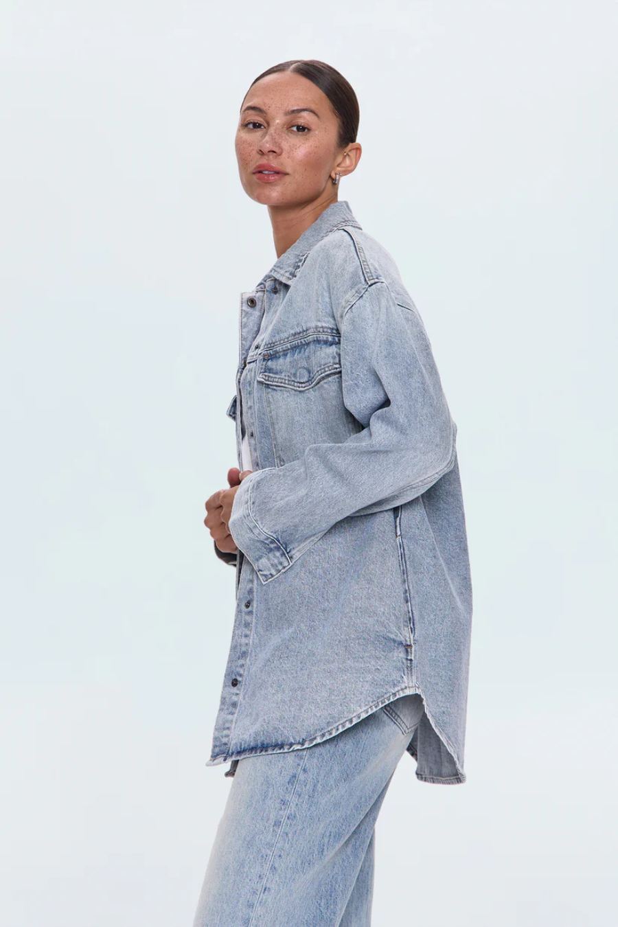 A menswear inspired denim jacket with a cool girl edge. The relaxed style has dropped shoulders that flow into sleeves just slightly long enough to add to the oversized element. With four pockets and the option to wear buttoned or layered, be prepared to get lots of wear out of this staple. Pro tip: size down if you're looking for a more fitted and feminine fit.