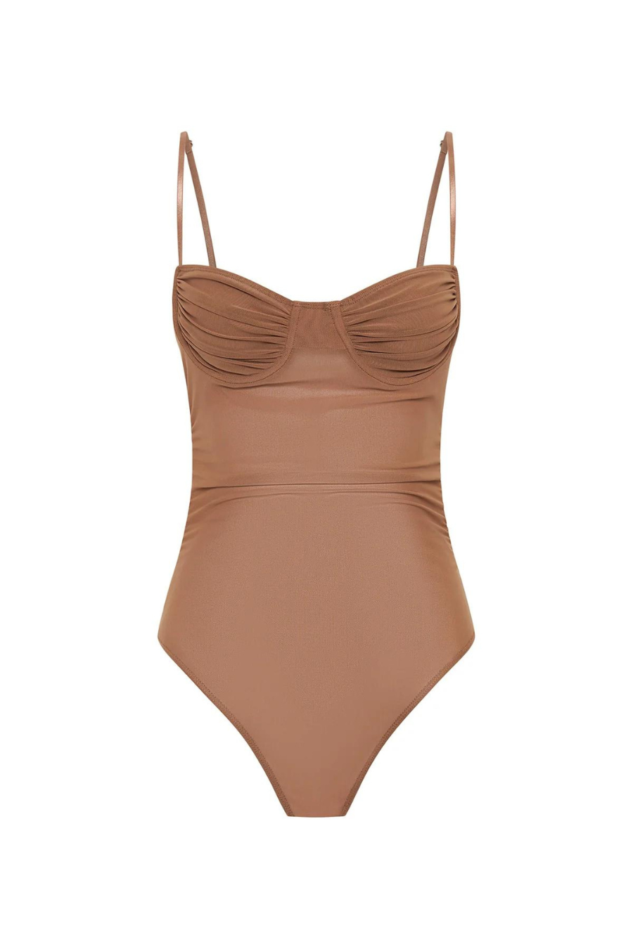 The Majorelle Mesh Bodysuit is crafted from a lightweight and breathable mesh fabrication that offers a sensual and alluring look. The gathers at the bust add a touch of femininity and enhance the shape of the bust, while the underwire provides additional support and lift.