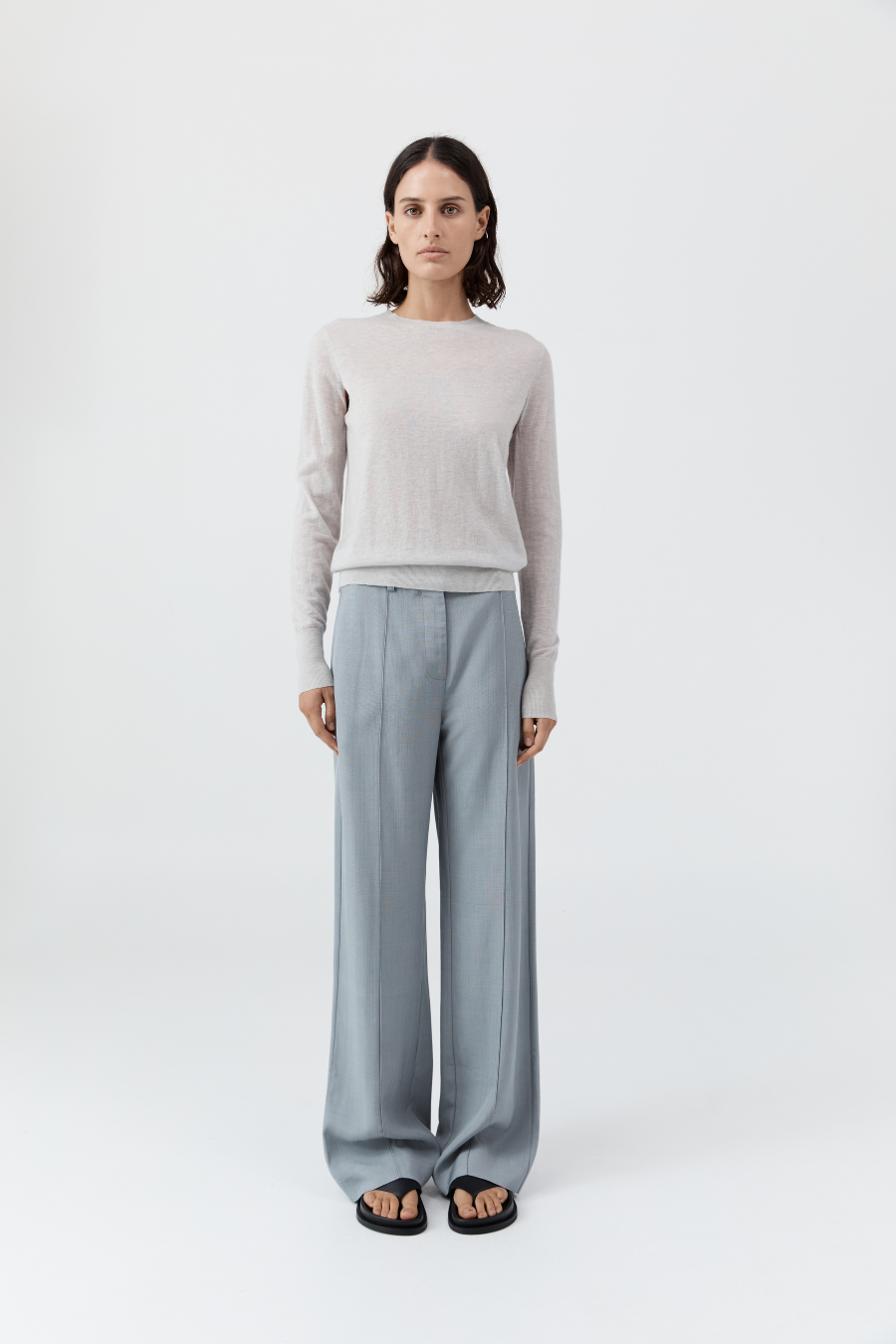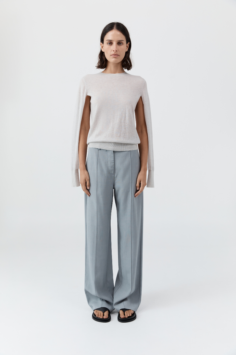 Merino Wool Slit Sleeve Sweater Light Grey Marle
