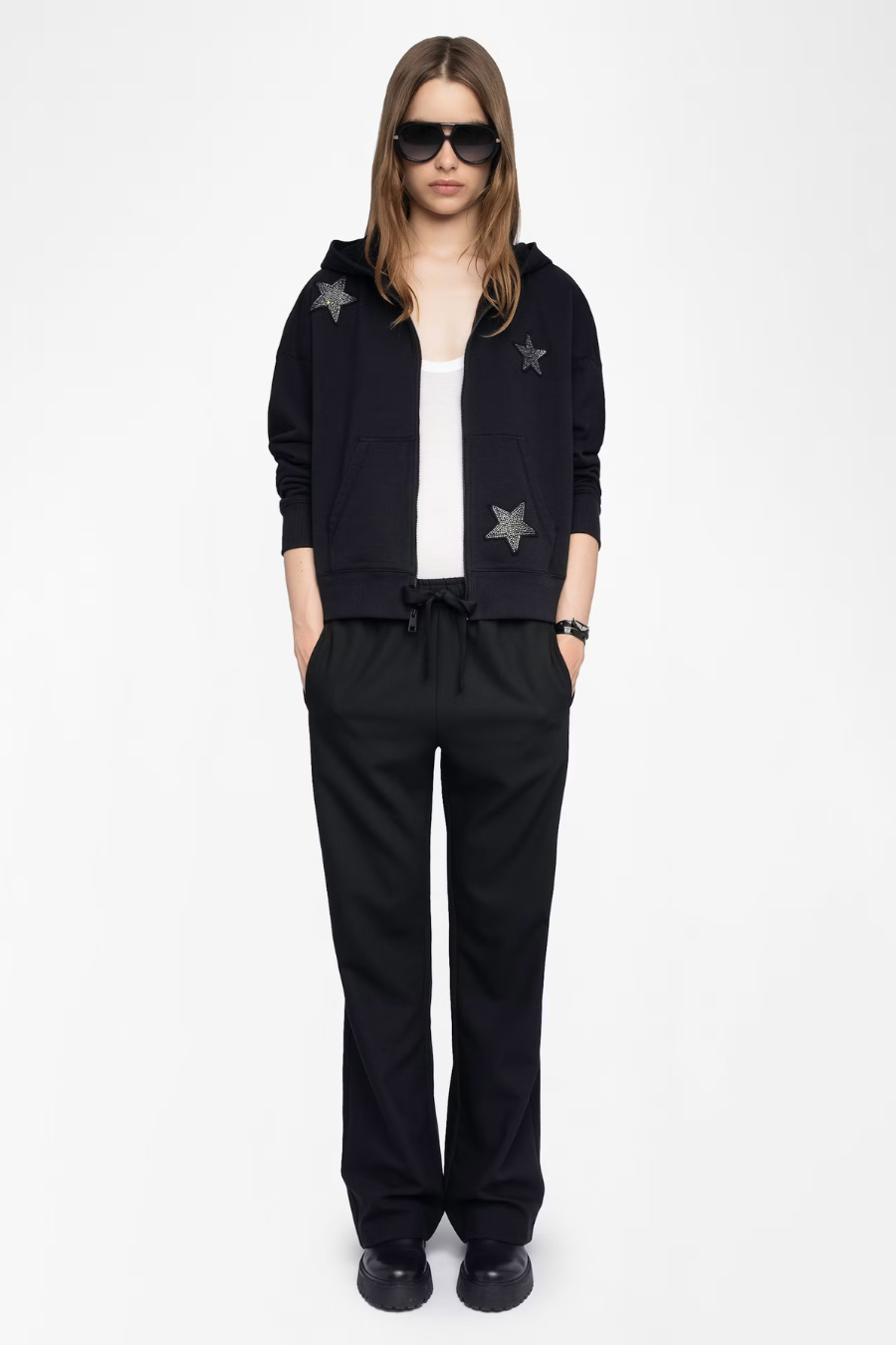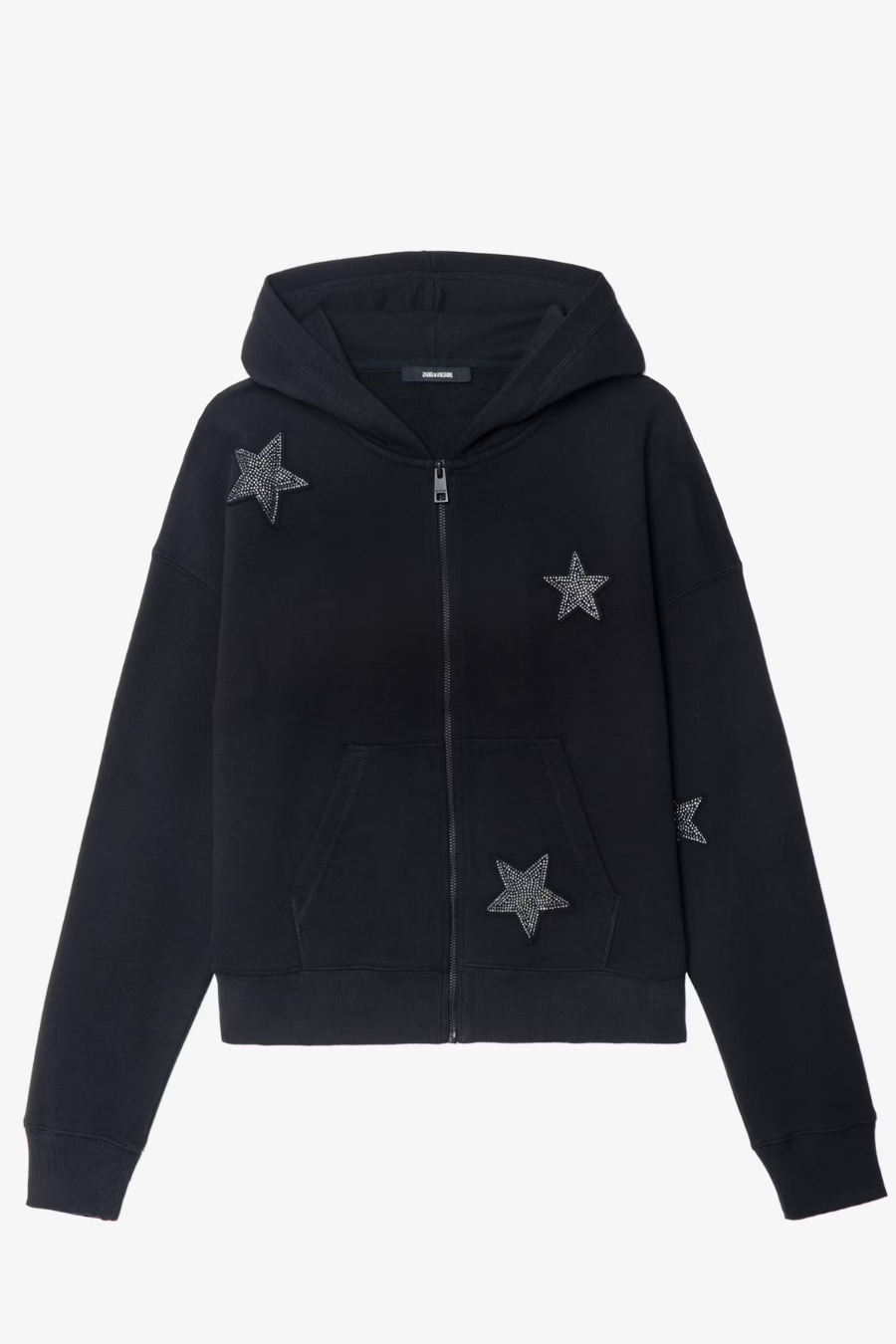 Black zip up hoodie - Diamanté stars throughout - Long sleeves with thumb holes