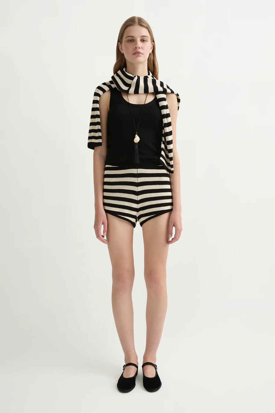 Patterned with cream and black stripes, the Miles Shorts are crafted from a soft textured knit. Designed for a close fit, they feature an elasticated waistband and contrast hem rib. Pair yours with the Miles Top.