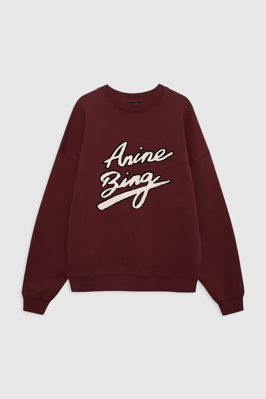 An oversized crewneck pullover made from midweight 100% cotton fleece in a cabernet that's brushed on the inside.