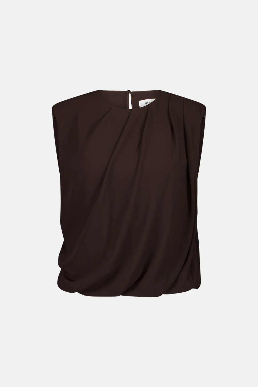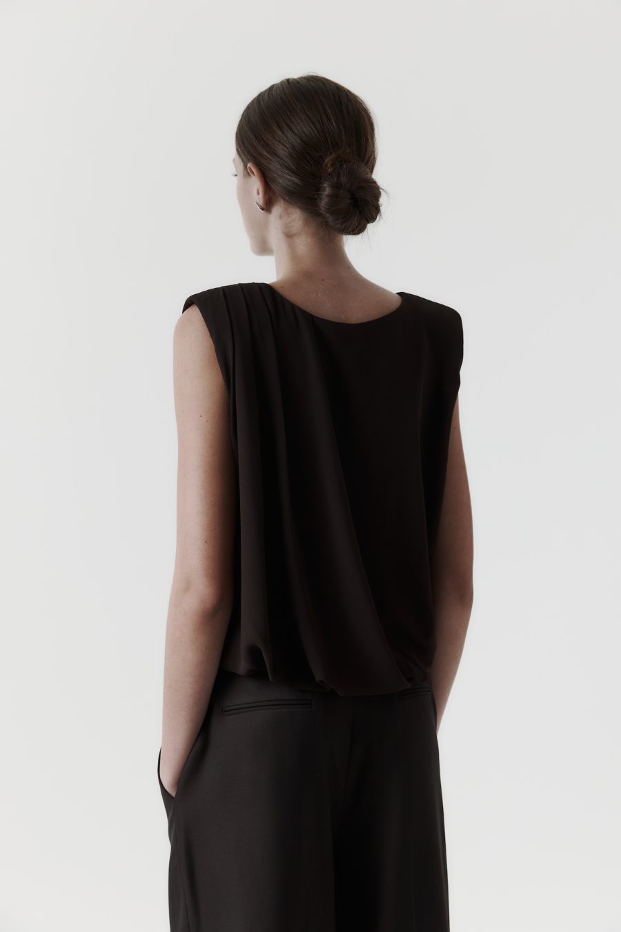 The Millen Top is an evolution of our best-selling Milly Top, reimagined in a fluid crepe fabrication. Designed with a softly draped silhouette, it features pleat detailing at the neckline and subtle gathering through the body.