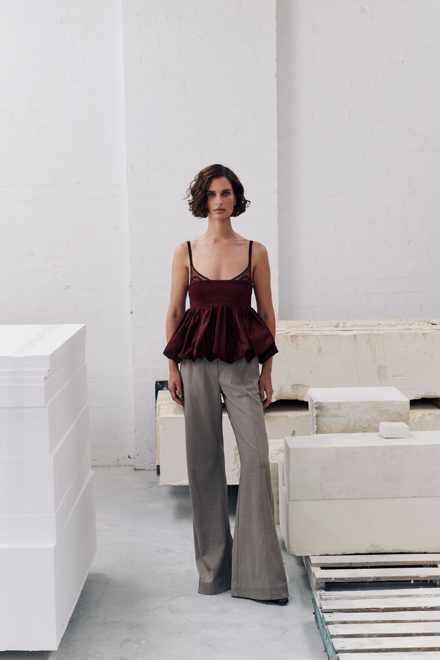The Mimi Peplum Top epitomizes timeless sophistication, highlighted by its intricate crochet detailing along the neckline and shoulder straps. Designed to flatter, it boasts a fitted silhouette through the bodice that seamlessly transitions into a voluminous bubble peplum. This style features adjustable shoulder straps and shirred back panels for the perfect fit. A heavy gauge metal zipper with a bespoke rounded zip puller in soft gold is used to fasten at the centre back. This elegant top can be styled with the Maverick Trouser for a matching set.