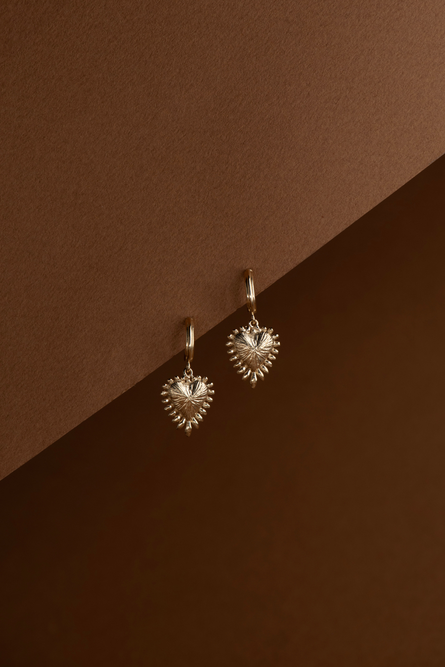The Mini Heart Rays Hoops are a special 20th Anniversary reimagining of a beloved classic. These gold earrings feature a delicate, handcarved heart charm that gracefully hangs from a beautifully textured hoop. Consciously crafted from recycled 925 Sterling Silver and plated locally in 22k Gold Vermeil, our Heart Ray Hoops are more than just a beautiful accessory, they serve as a subtle, powerful reminder to cherish the people and passions you love most. Designed to be part of your daily ritual, these heart earrings inspire a moment of affirmation and self-love whenever you wear them.