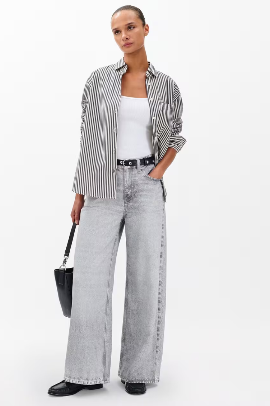 Miramar, our revolutionary printing technique, makes any material look like denim. These Sofie pants are cut and sewn from cotton terry cloth that's ultra-soft on the inside and printed on the outside to look like your favorite jeans. Featuring super-wide legs with flared hems that hit at the ankle, plus functional belt loops, front scoop pockets, and a zip fly with a button closure, the high-rise style further achieves its comfortable fit and feel with the other pockets and denim details digitally printed on the fabric.