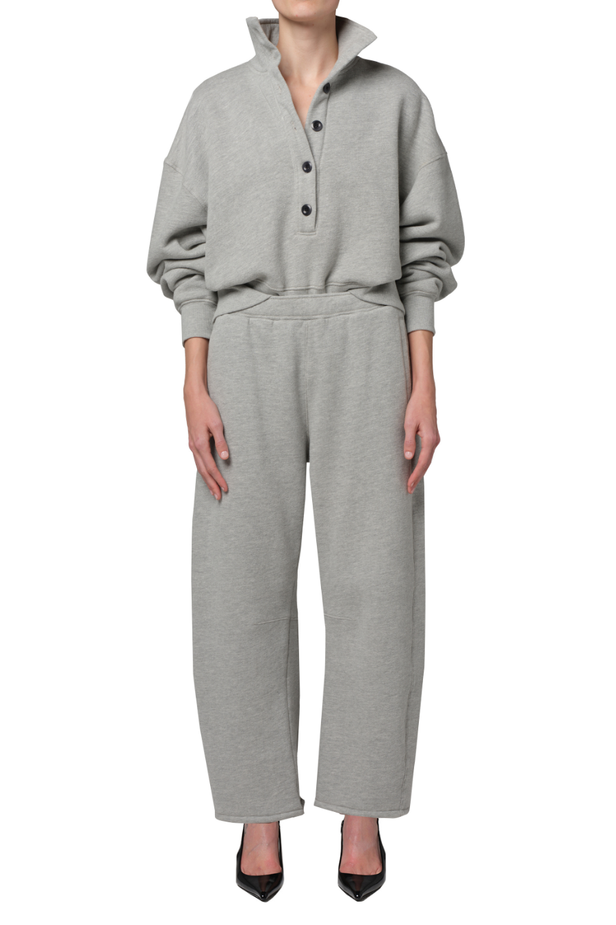 The Miro sweatpant is a relaxed staple with an easy top block and a tapered barrel leg silhouette.