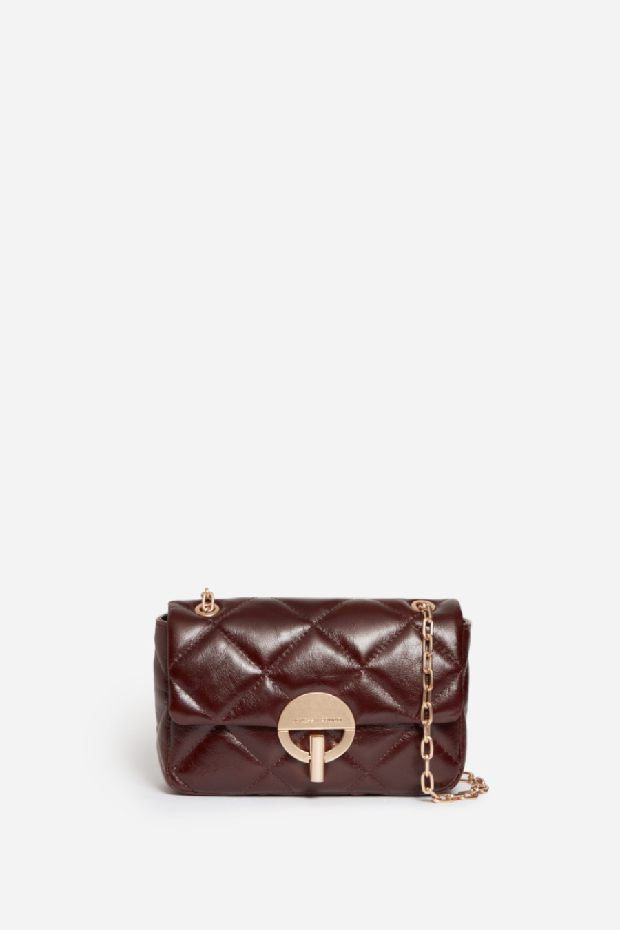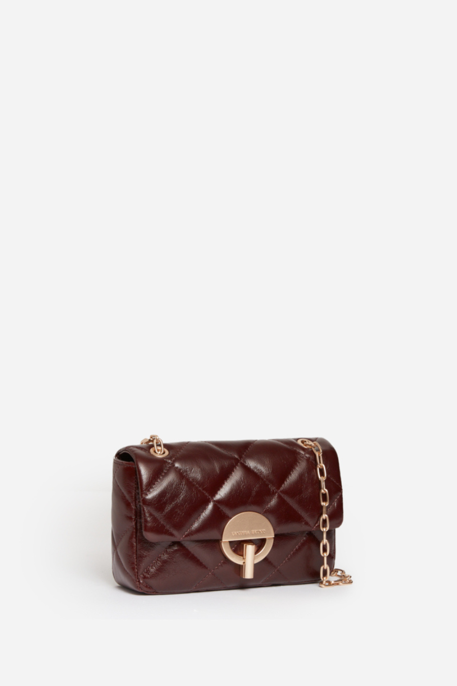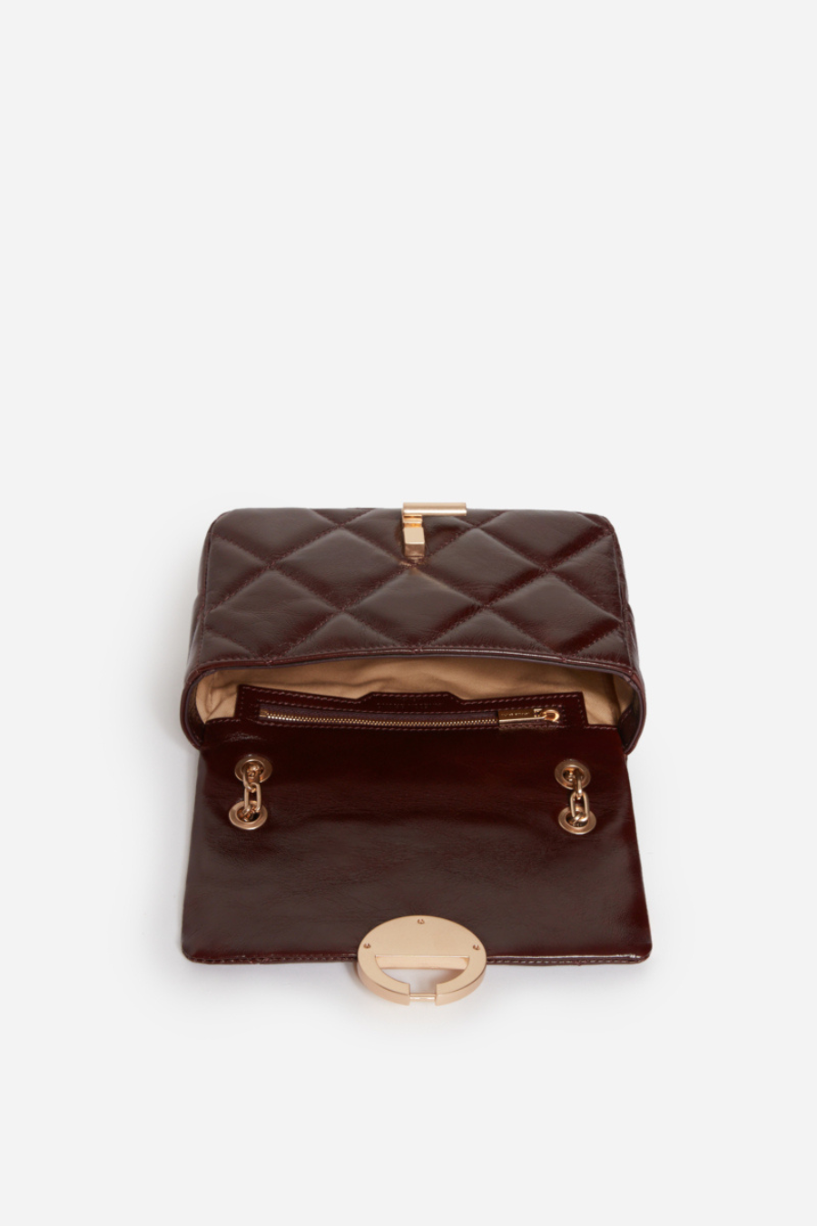 This handbag perfectly combines refinement and functionality thanks to its elegant design. Crafted from cracked and quilted cowhide leather, it captivates with its sophisticated texture and harmonious lines. The perfectly organized interior offers a main compartment and a patch pocket to organize your essentials in style. The iconic round clasp and chain shoulder strap add a touch of modernity and femininity. With its timeless look and functional details, it is a must-have accessory for all your outfits.
