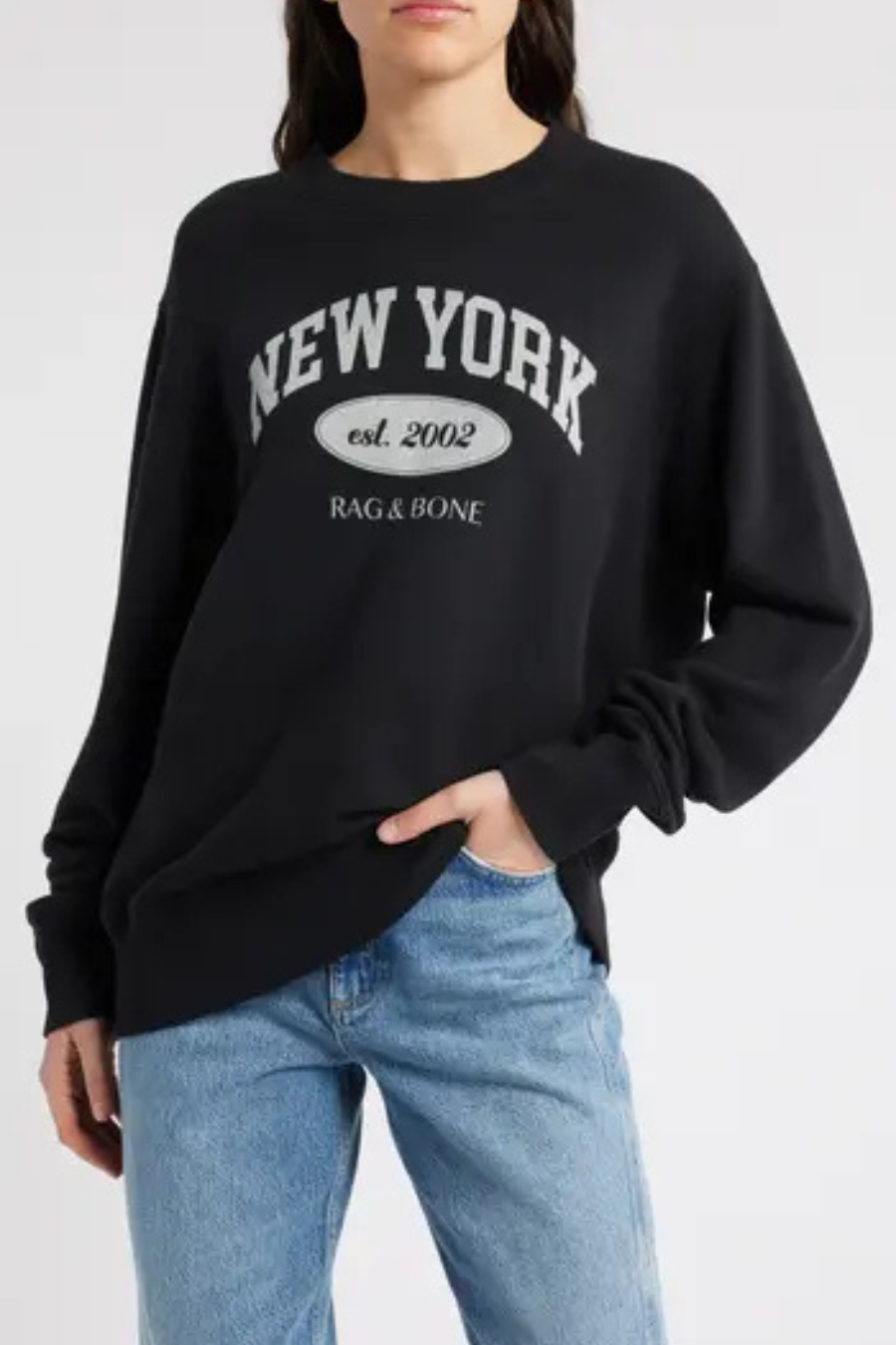 Varsity graphics turn up the alma-mater vibes of this sweatshirt cut for a relaxed fit that envelops you in the softness of its cozy cotton-blend fleece.