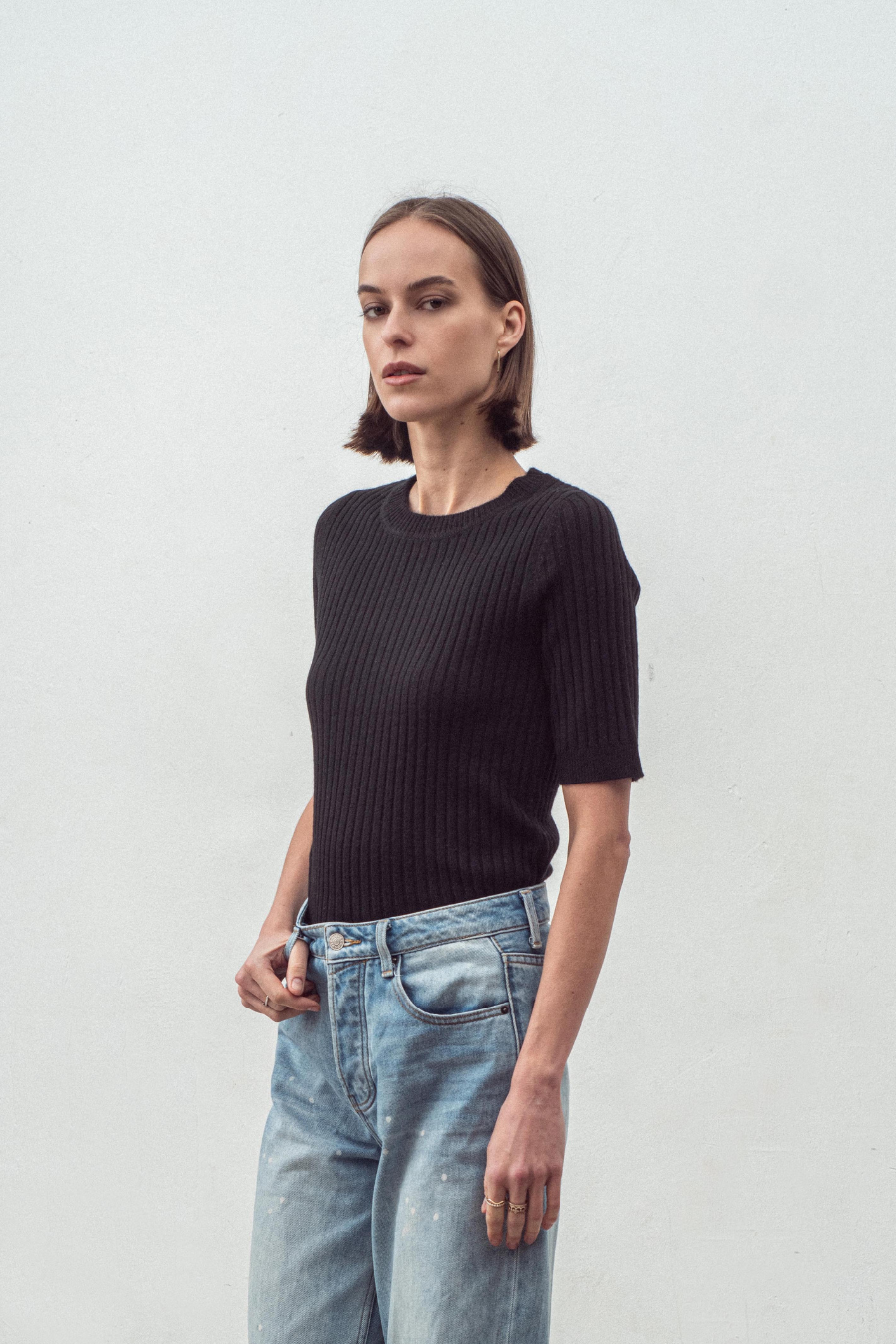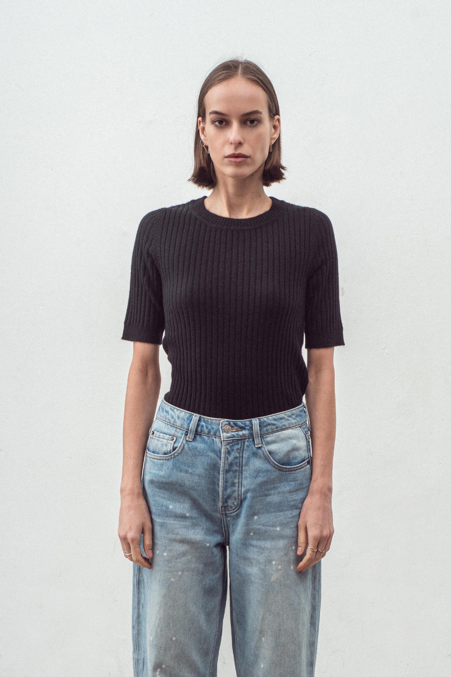 Classic slim fit ribbed crew-neck T-shirt in superior ultra-soft cashmere