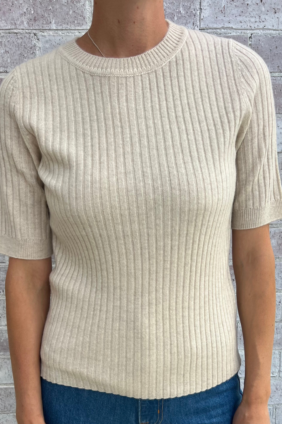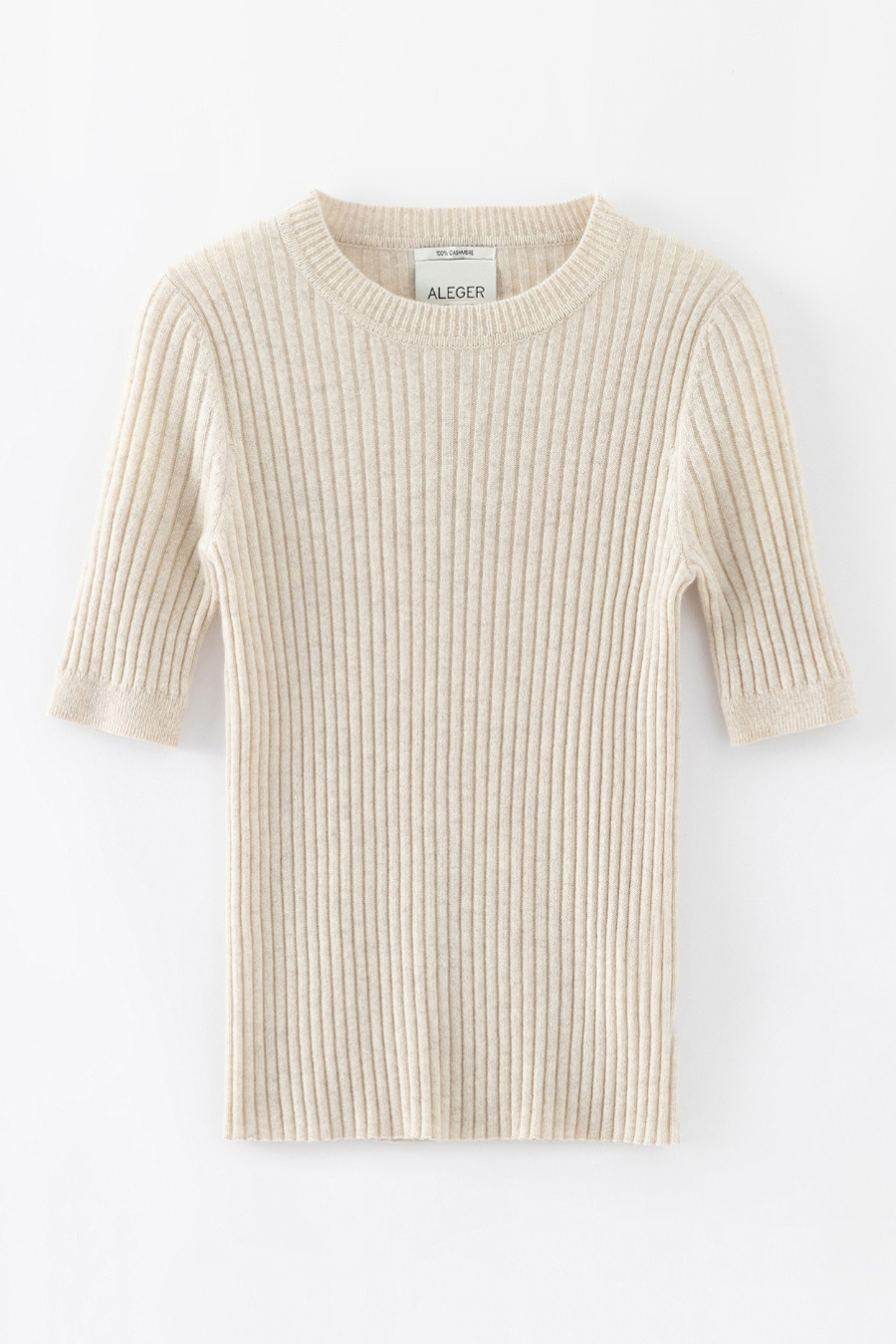 Classic slim fit ribbed crew-neck T-shirt in superior ultra-soft cashmere