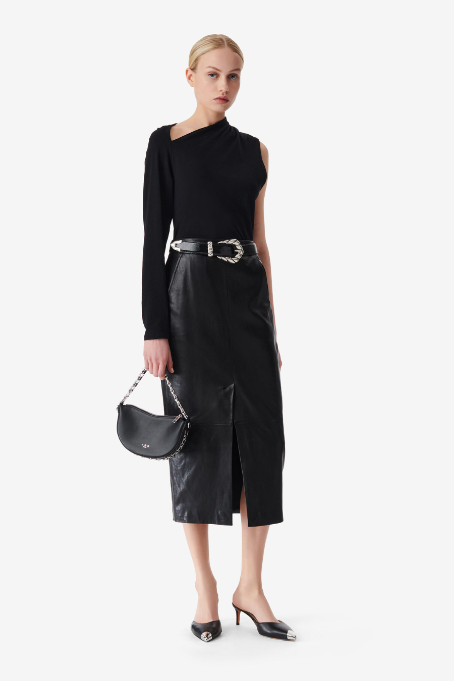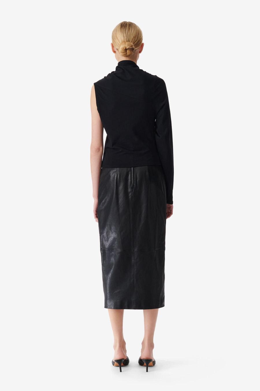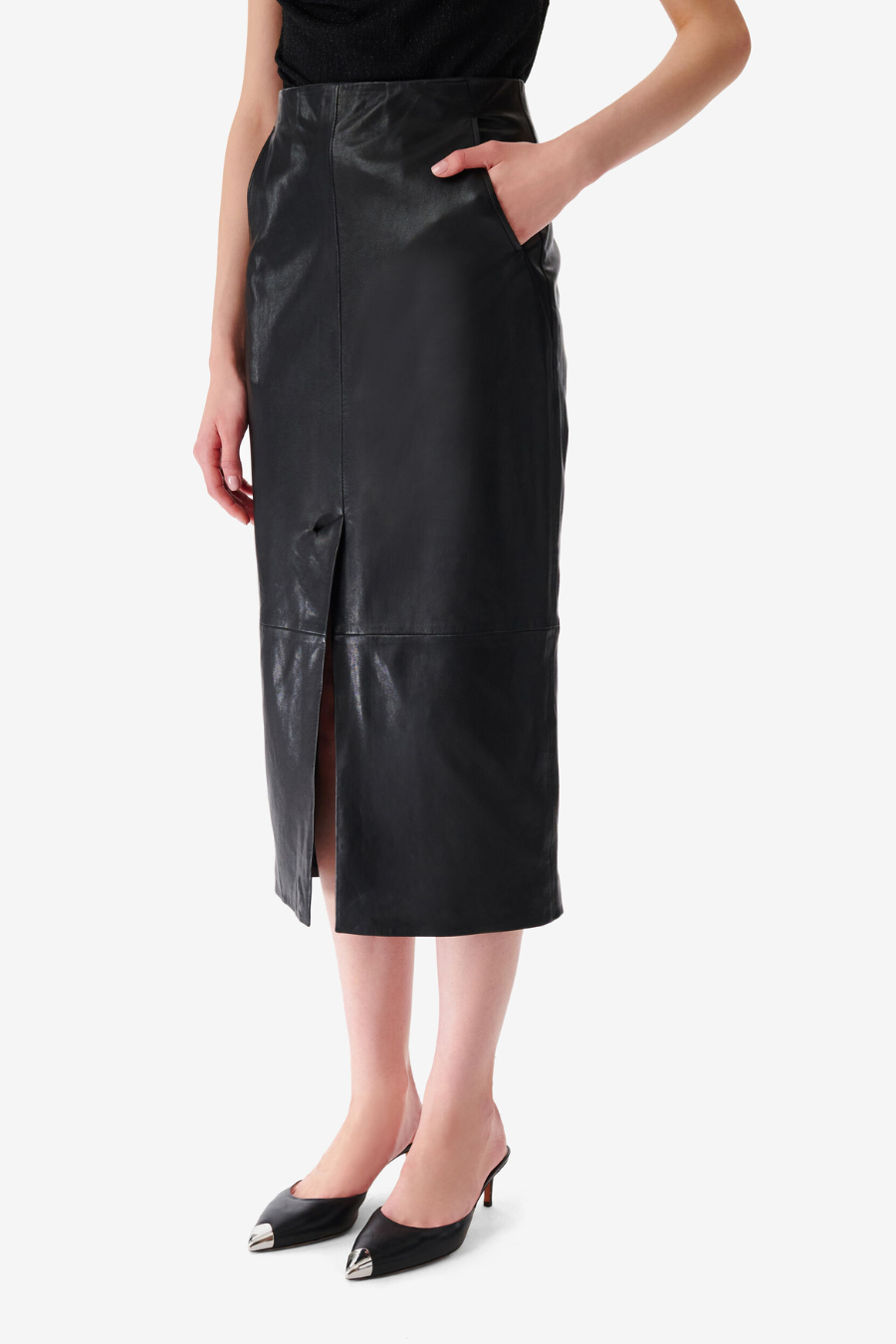 Midi-skirt, front pocket detail middle front slit fully lined.