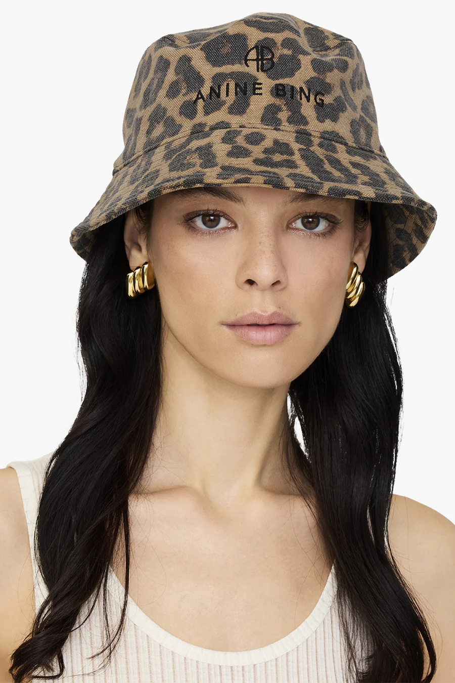Crafted from durable cotton canvas, it features an all-over leopard print and tonal topstitching for a polished yet playful look.