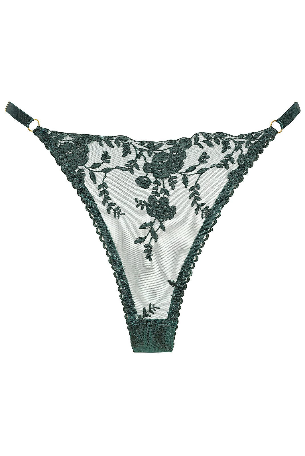 Meet the Nicolette Thong in Emerald Green, where sophistication is combined with practicality. With stretch spot back mesh & an intricate woven lace front panel, this will be the style that you always reach for!