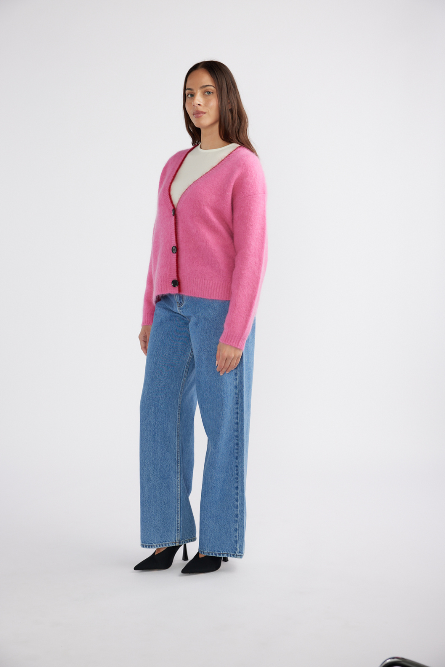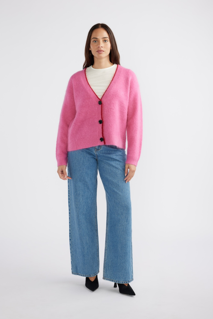 Noah Knit Cardigan in Pink Punch is crafted with a