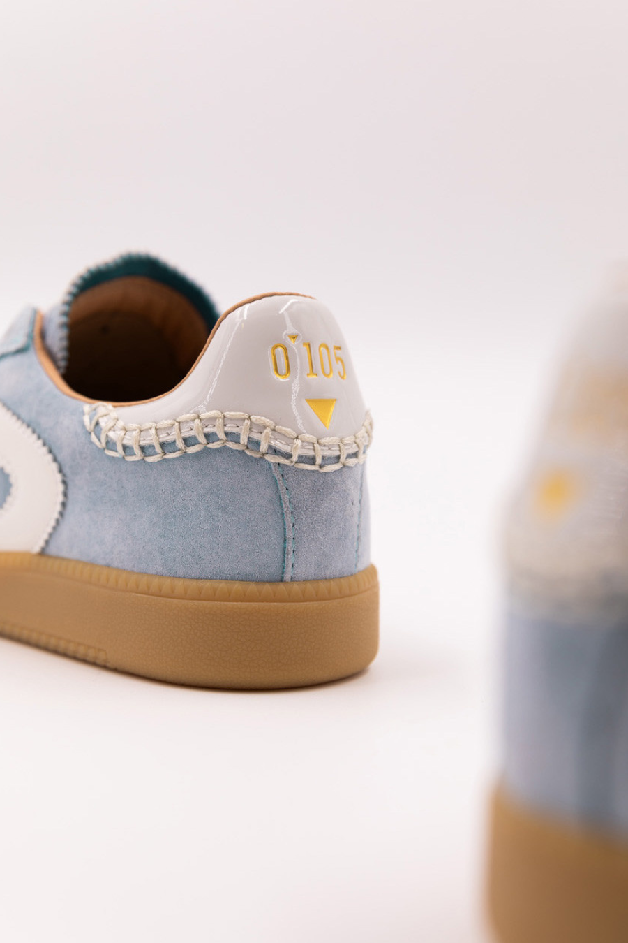 The Nova Storm captivates with its storm blue hue, a soft blue with a hint of gray that immediately conveys a sense of freshness and modernity. The combination of velvety suede and smooth leather creates an elegant interplay of materials, perfectly balanced by the caramel sole that subtly warms the overall look. This sneaker is part of a revisited retro-sporty aesthetic, with a sleek silhouette and a very contemporary look. Easy to wear every day, it adds character without ever being over the top, and pairs naturally with raw denim or ecru shades for a bright, controlled look that exudes summer.