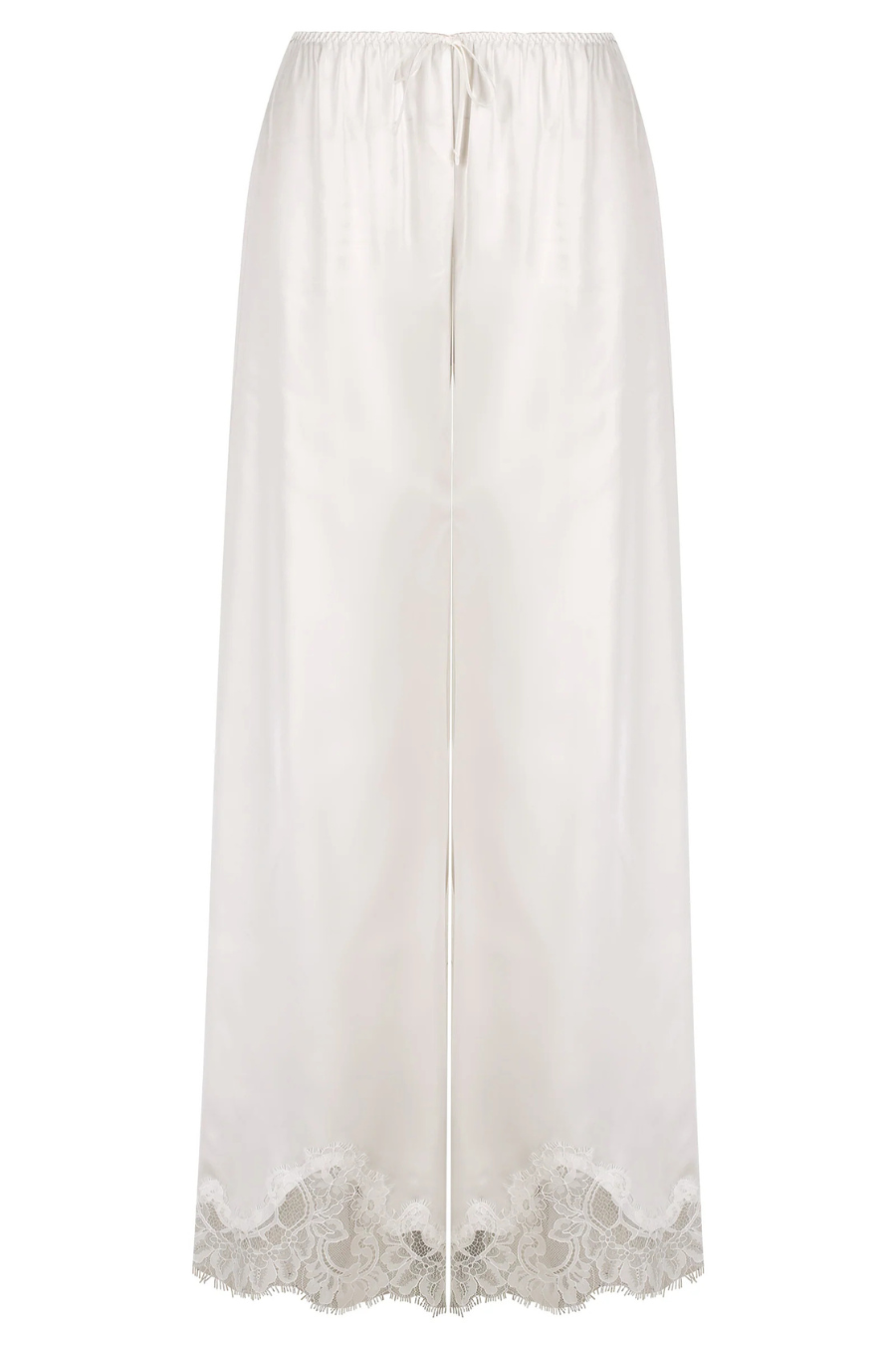 Effortlessly elegant, the Olivia Pant features a stunning scalloped lace trim paired with our signature luxe satin. Finished with a soft waist tie.