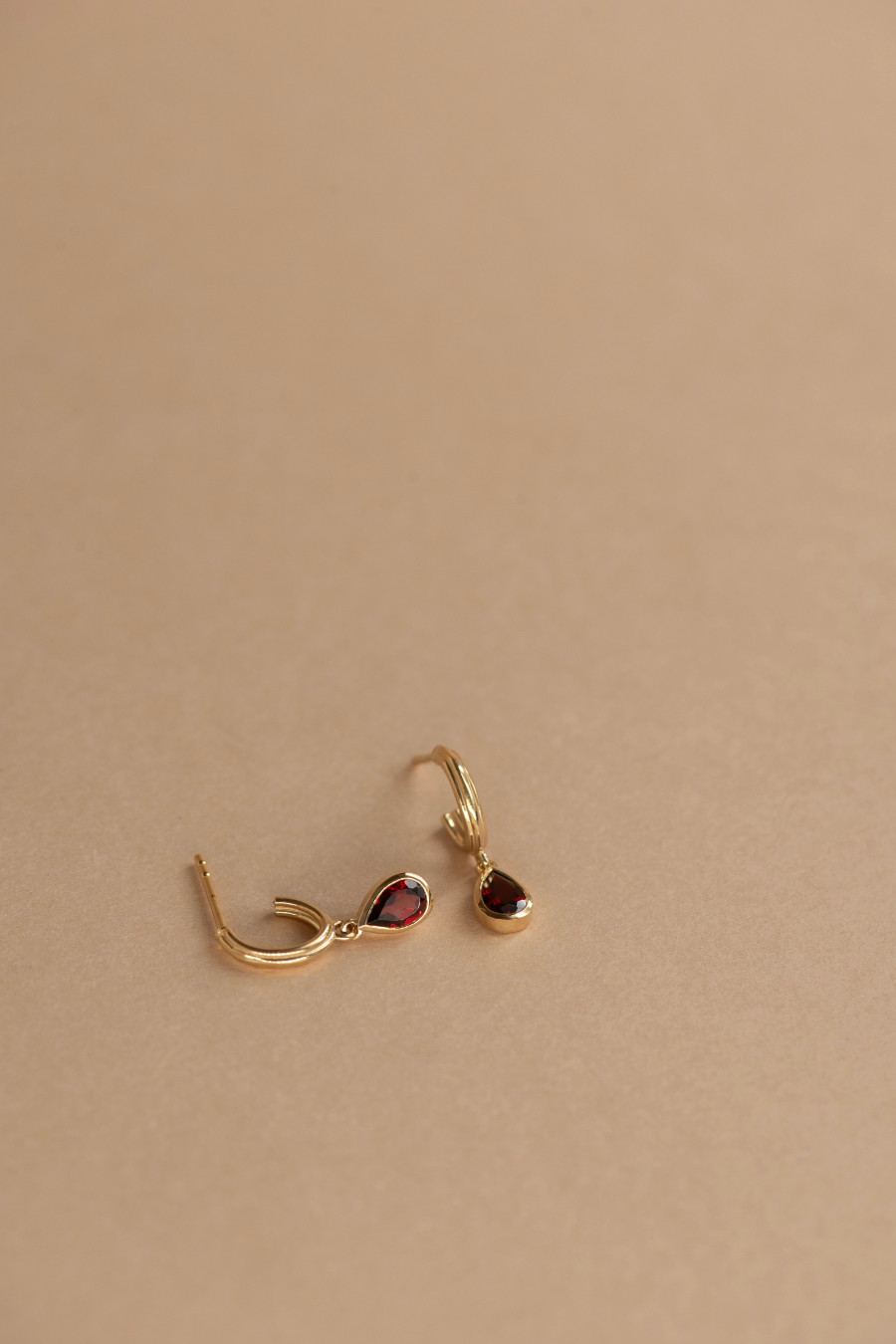 Ophelia Hoops 22k Gold Vermeil Pear Garnet