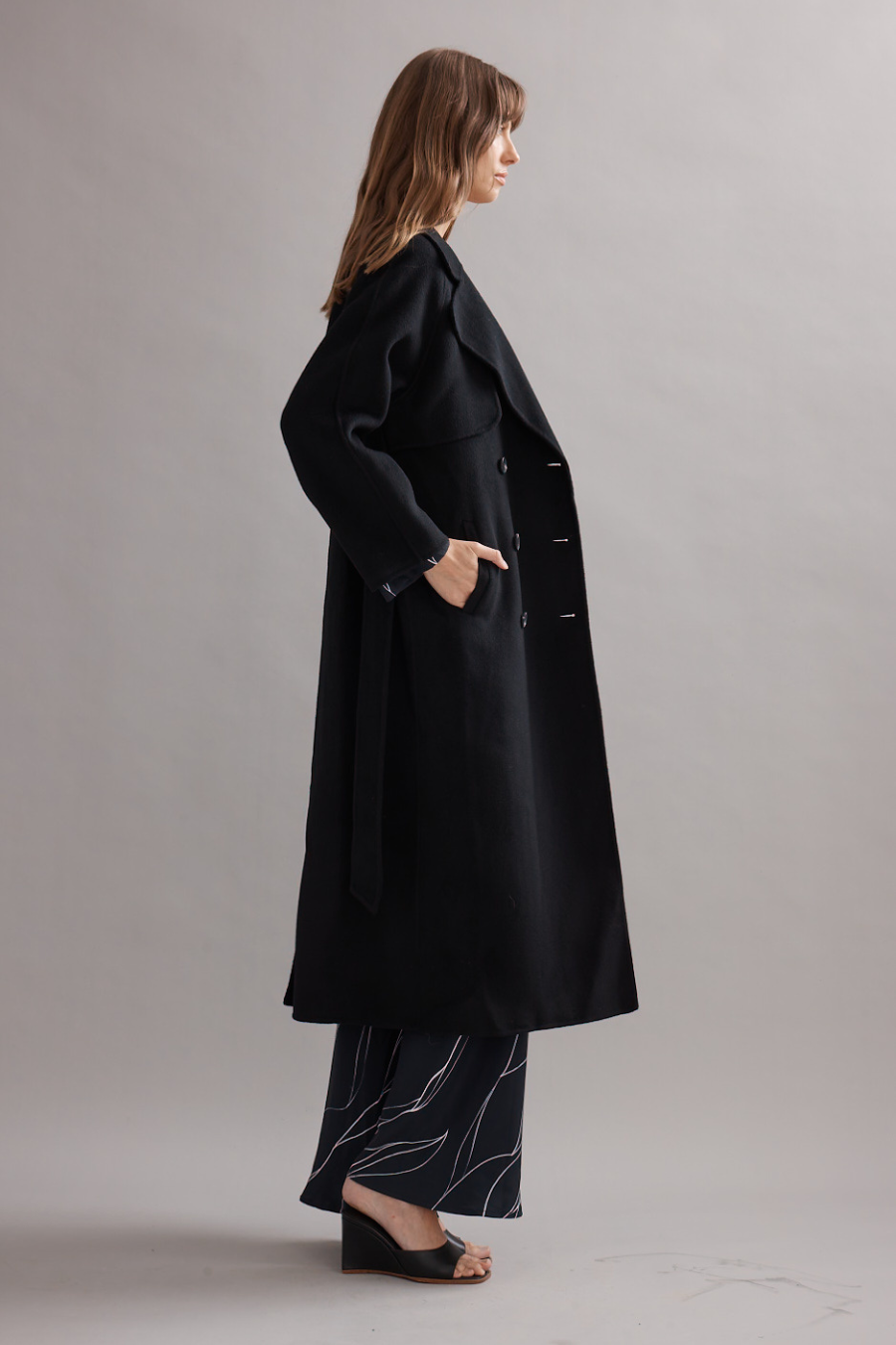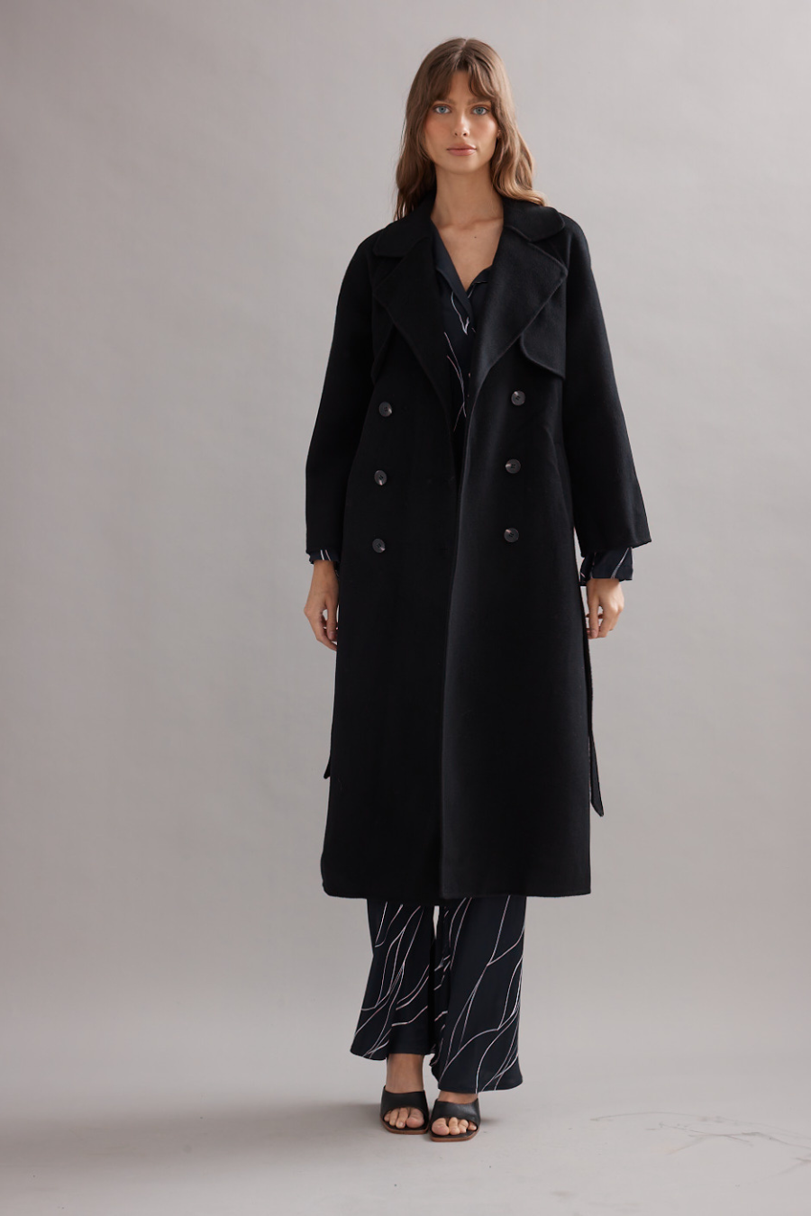 Meet your new winter staple — The Paddington Coat. Thoughtfully crafted with a wool, this full-length coat effortlessly elevates your everyday look. Available in three classic colour-ways, it features a relaxed silhouette, doublebreasted button detailing and a waist tie for shape. Designed to be worn over anything from cosy knits to workwear, the Paddington Coat is your go-to for understated luxury. Whether you're dashing between meetings or strolling on a weekend getaway, it promises to keep you both stylish and warm.