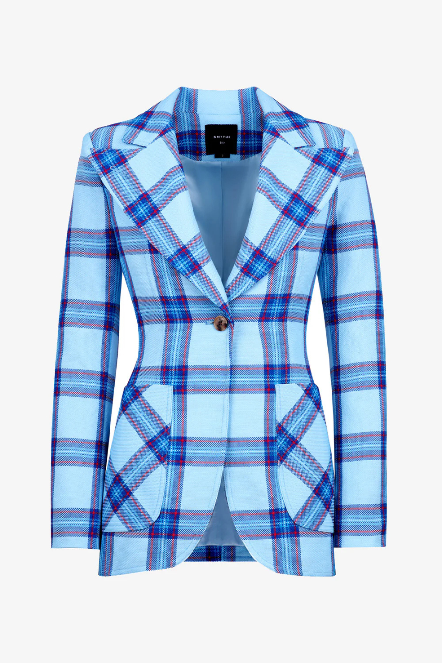 Patch Pocket Birkin Blazer Capri Blue Plaid