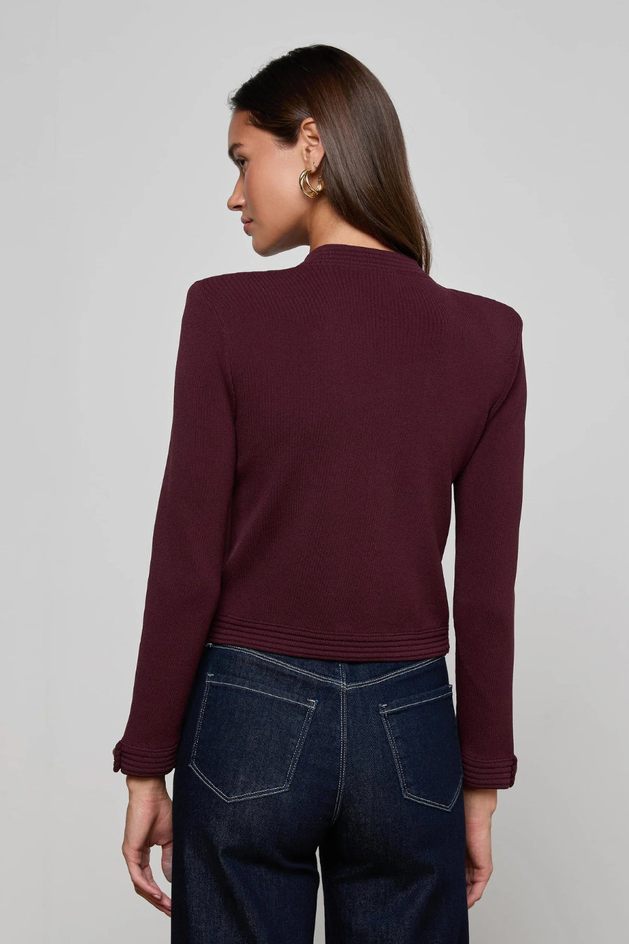 Patsy Crop Crew Cardigan Malbec/ Gold