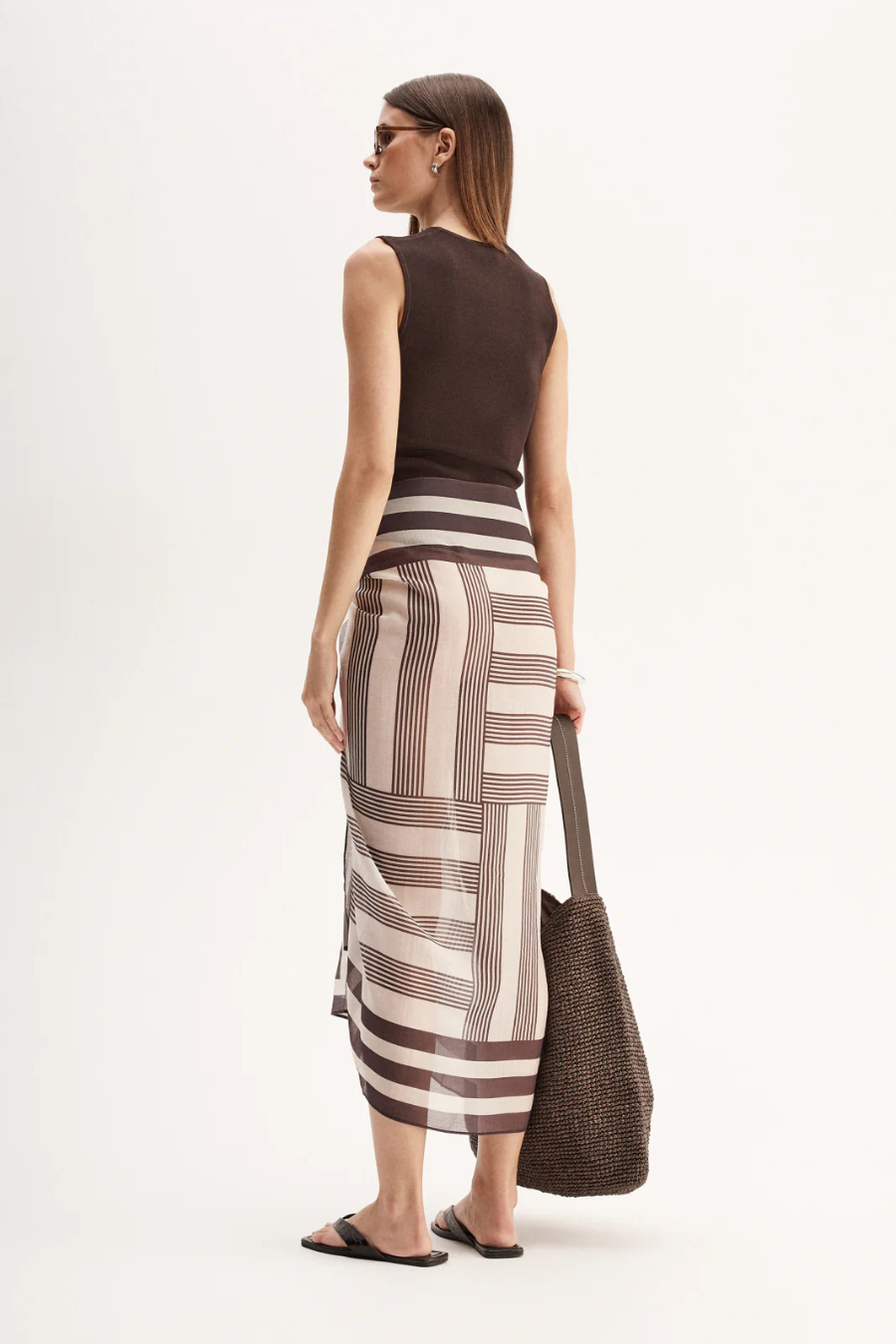 Made of a soft, semi-sheer fabric with a bold contrasting stripe print, the Pierre Sarong is a sleek and contemporary summer accessory. Ideal for beach and poolside layering, this piece is a summer staple.