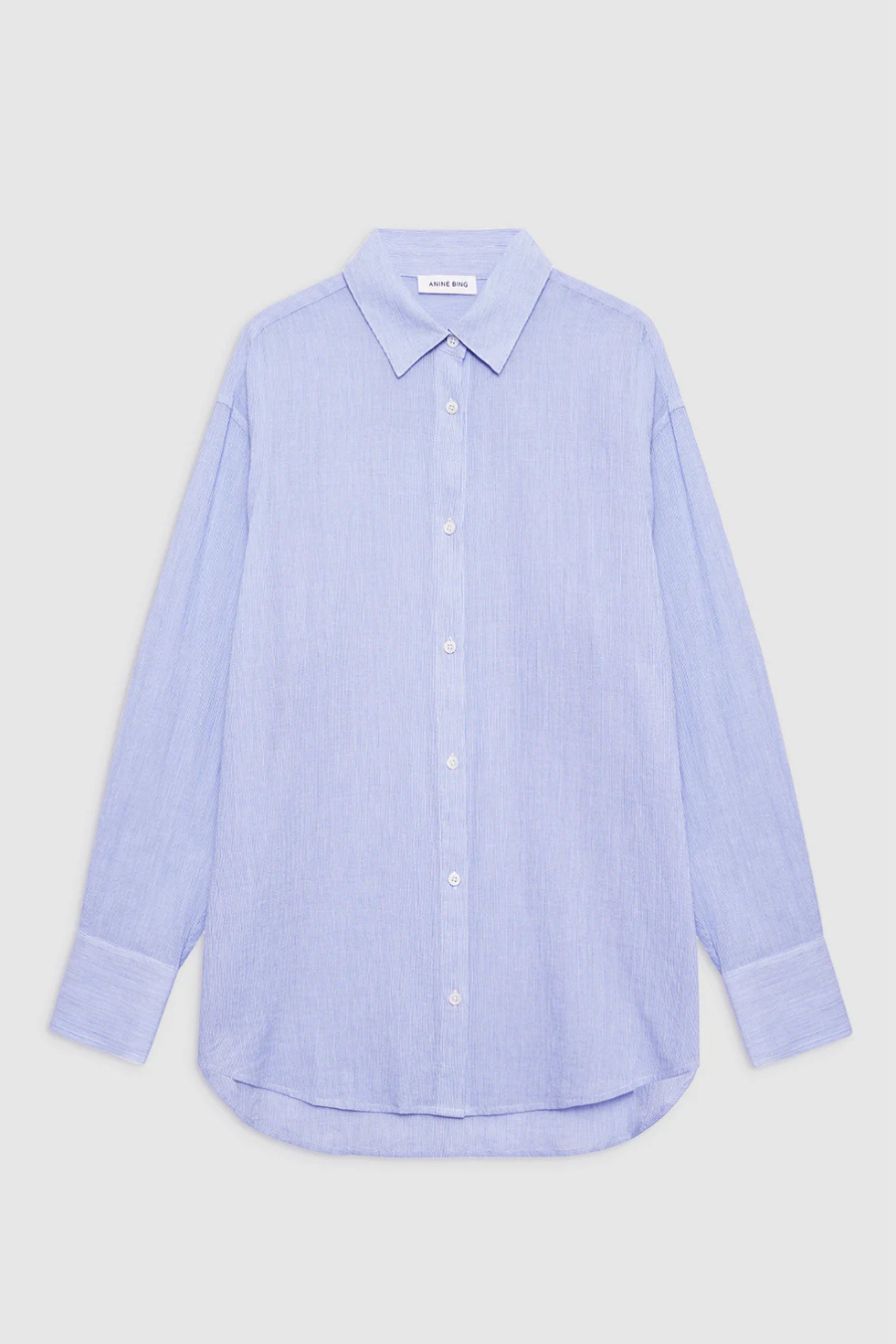 The Plaza Shirt is a classic button-up style made from a blue and white striped 100% cotton shirting fabrication that's lightweight and textured.