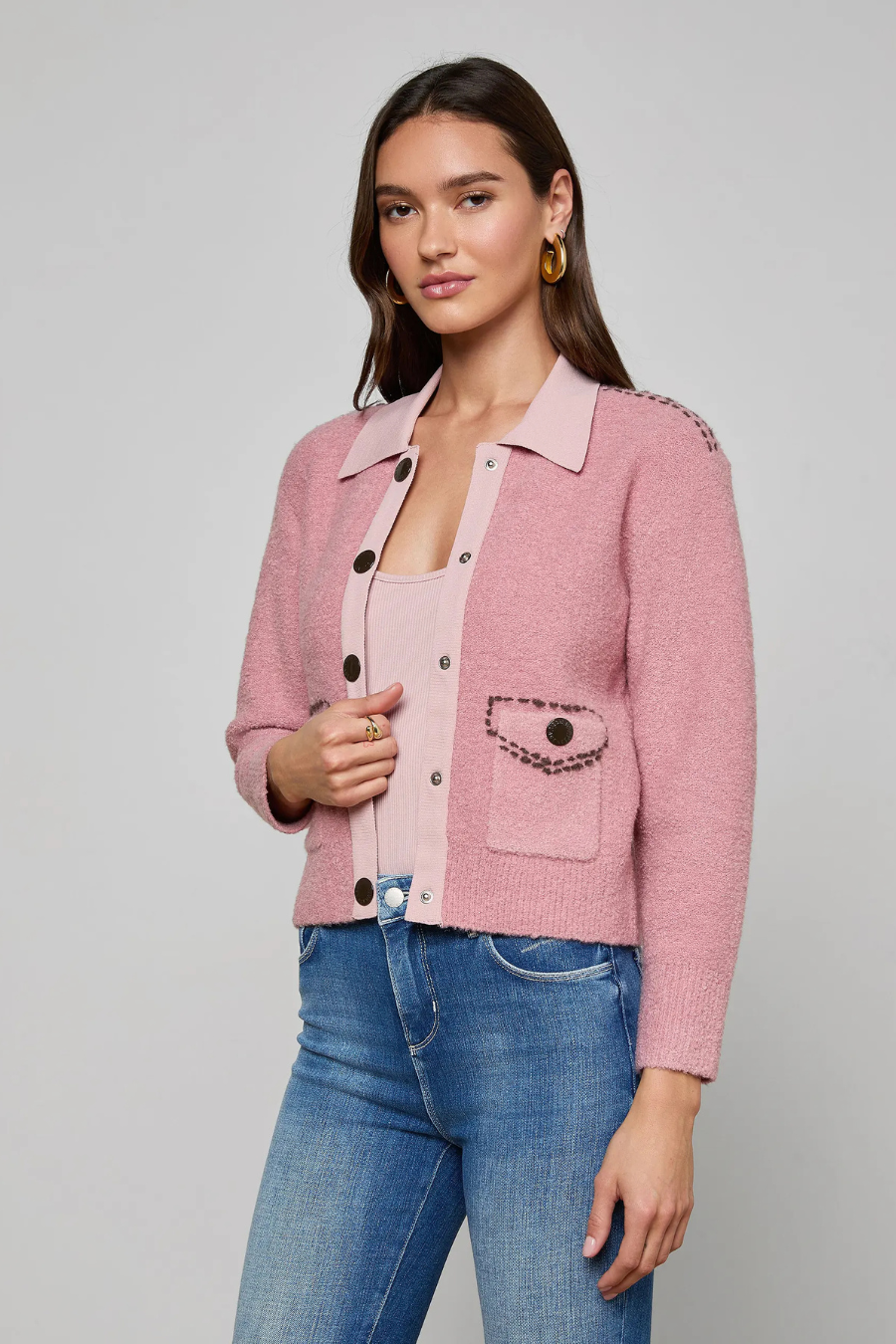 Poetry Cardigan Mauve Rose/ Dark Brown