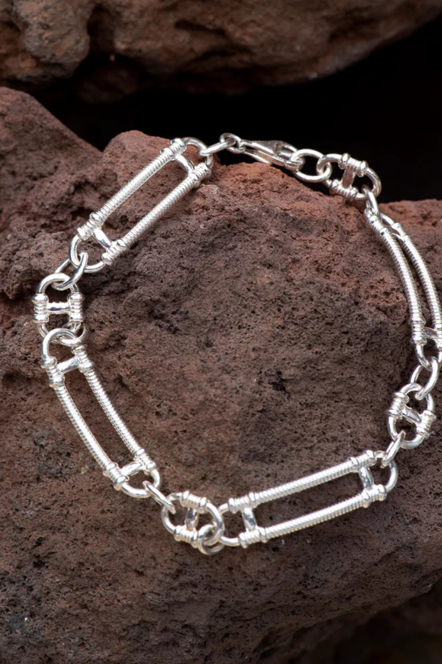 Prana is hand assembled with articulated open-link chains.