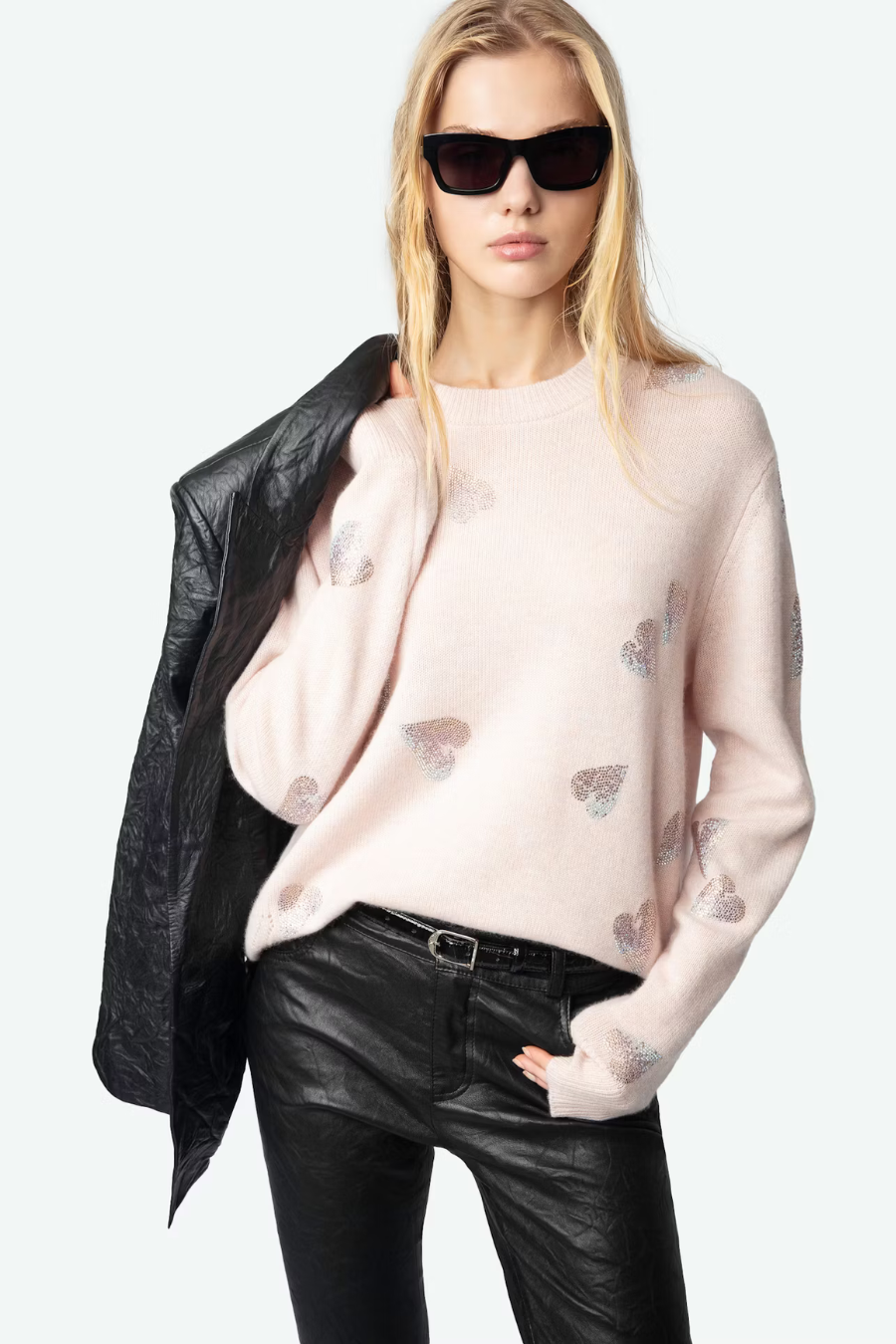 100% pale pink cashmere Pearly sweater for women