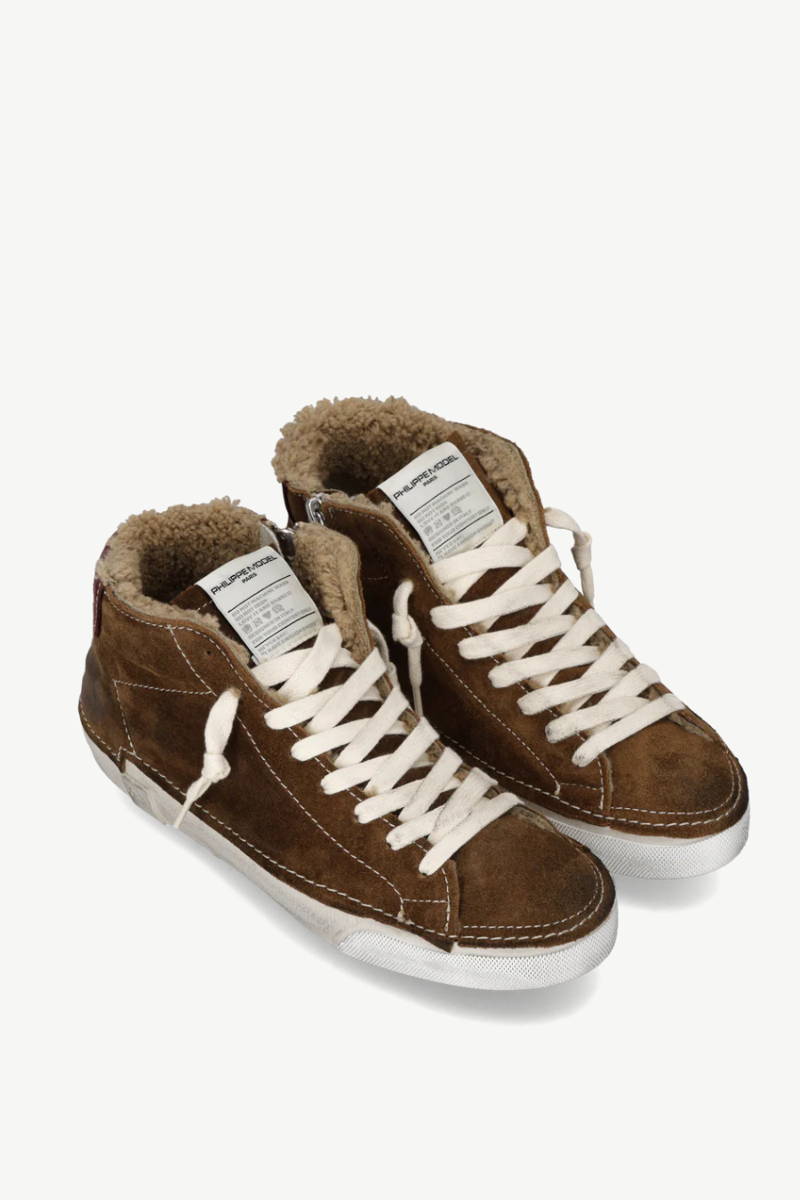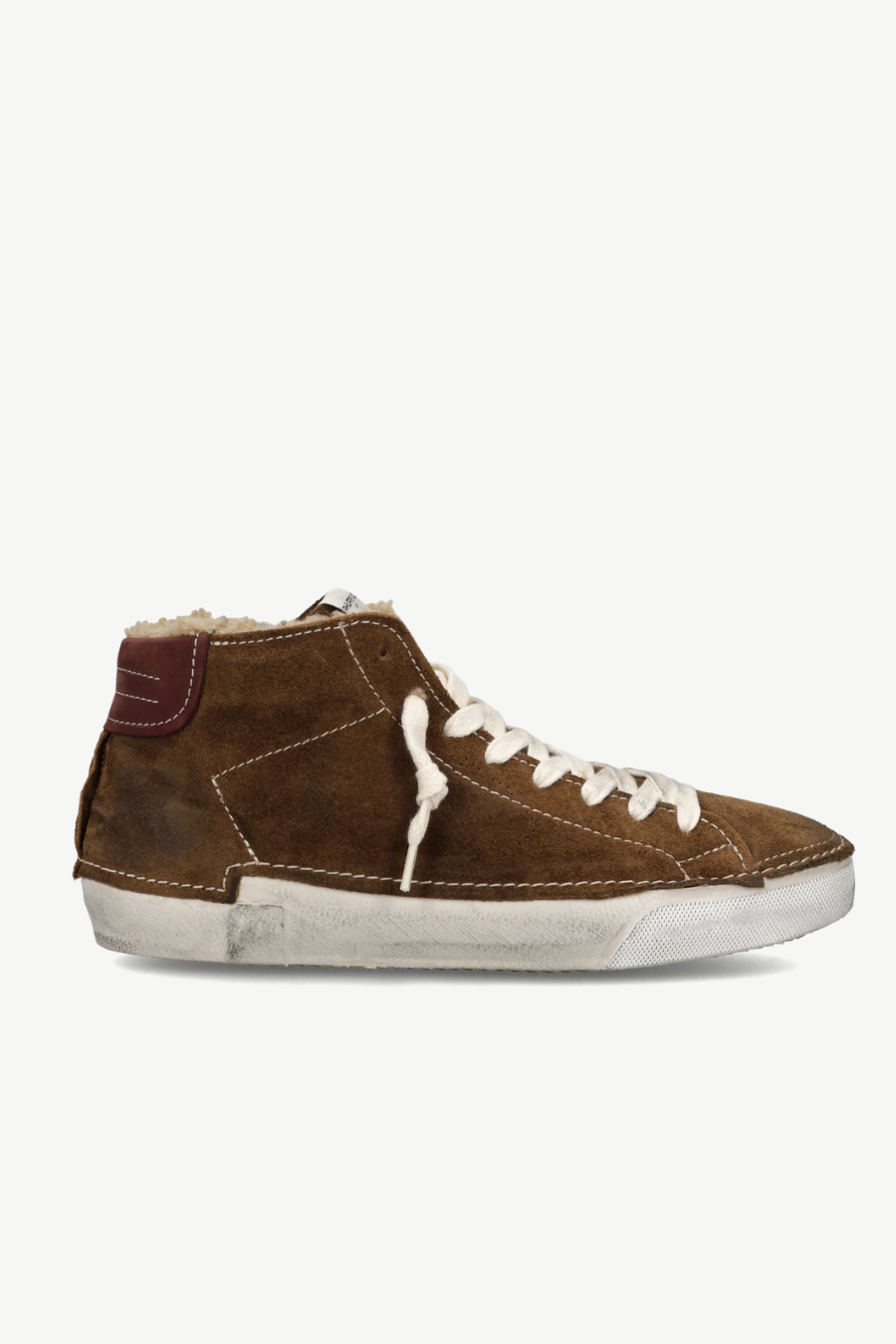 Mid sneaker in stained leather with stitching and protruding edge. Padded insole and faux fur lining. Handcrafted sole band. Rubber sole and internal zip for a comfortable fit. Sole: 2.5 CM