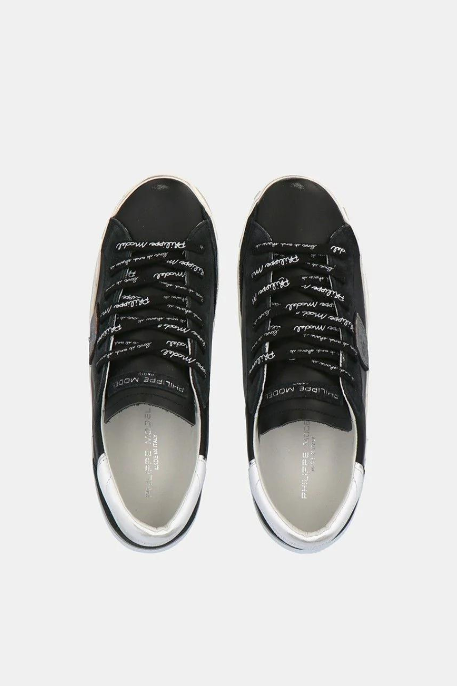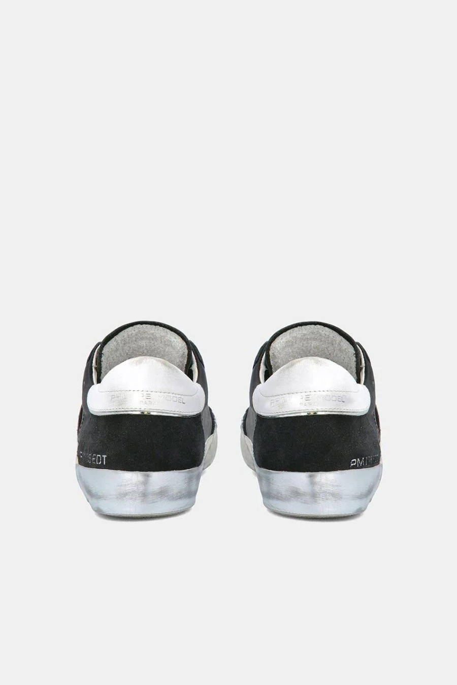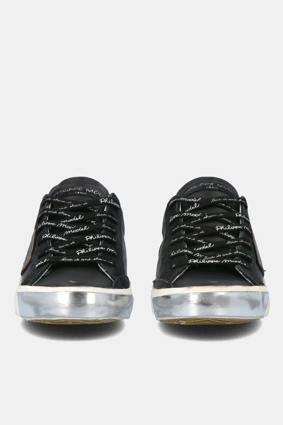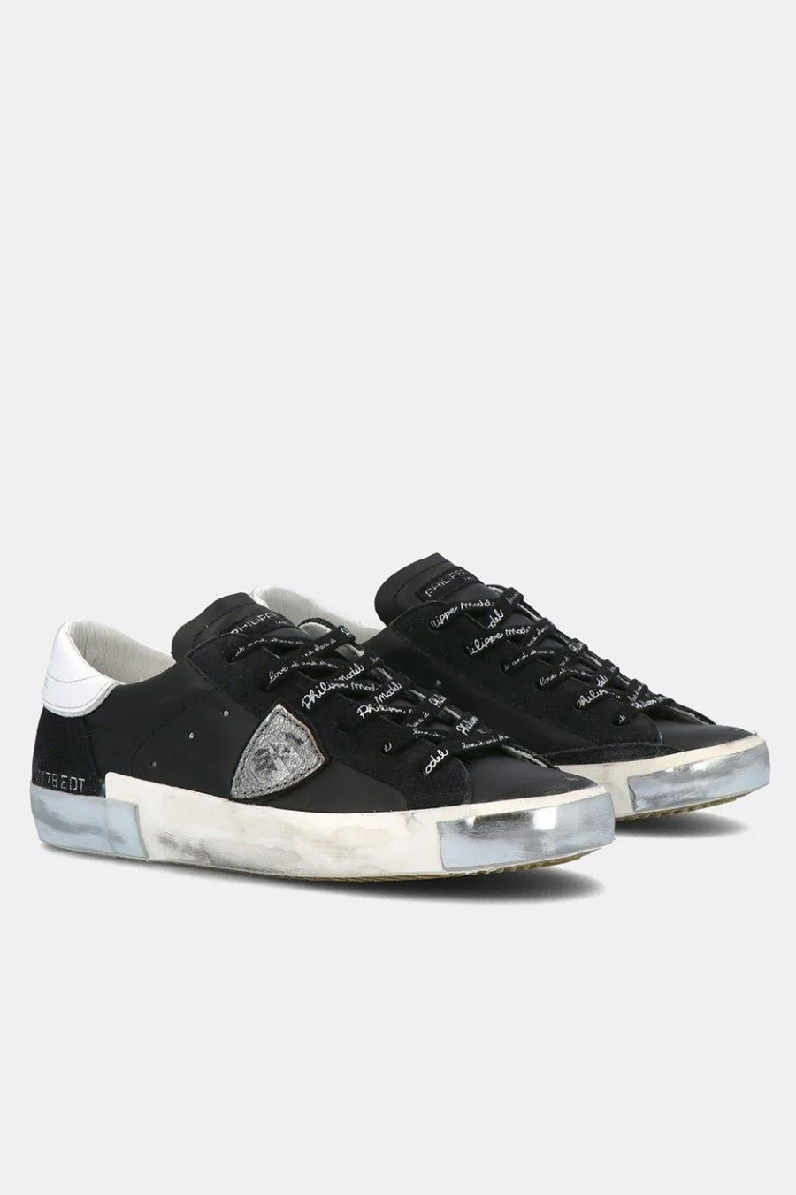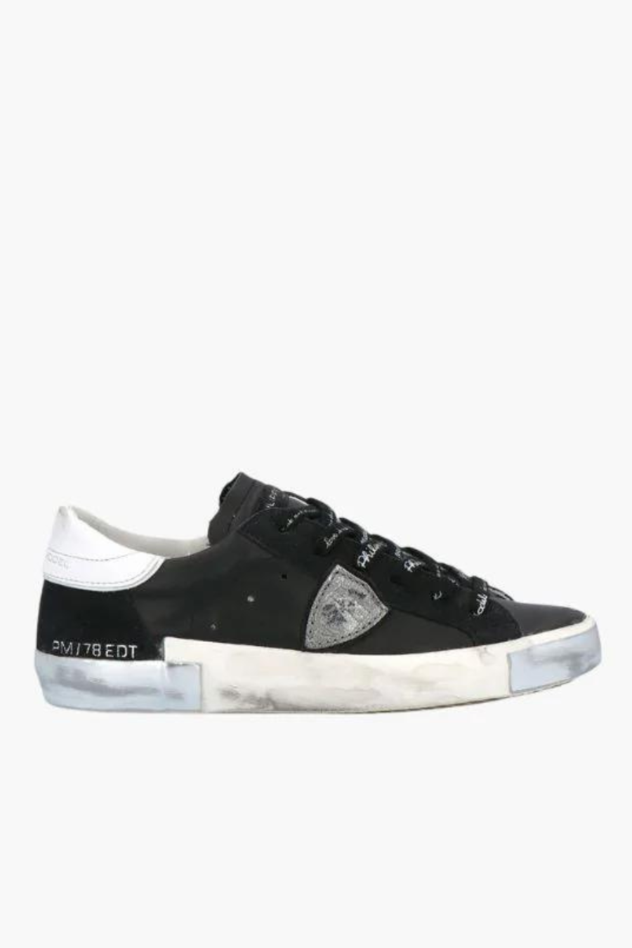 A contemporary take on the iconic Paris model, the PRSX (ParisX) abounds with energy, fine design and an elegant range of colours and materials. The idea of ‘lived-in’ as a synonym for craftsmanship can be seen clearly in the PRSX, thanks to the brand’s unique, patented foxing tape that wraps the sole. The shield sewn to the side of the upper and the PM78 lettering, a tribute to designer Philippe Model, who launched the brand in the French capital in 1978, emphasize the authenticity linked to the brand’s origin and identity. In black leather with tonal suede heel counter and eyestay. Contrasting white leather heel tab. Branded cotton laces. Sole height: 2.5 cm. Vintage-effect brushed rubber sole with laminated inserts. Regular fit. Philippe Model Paris only uses Italian materials and leather. We call it ‘made with care in Italy’.
