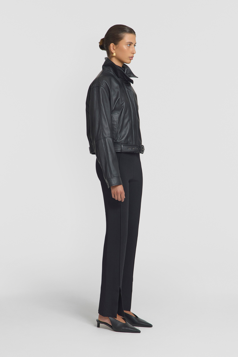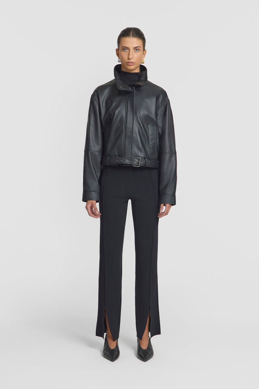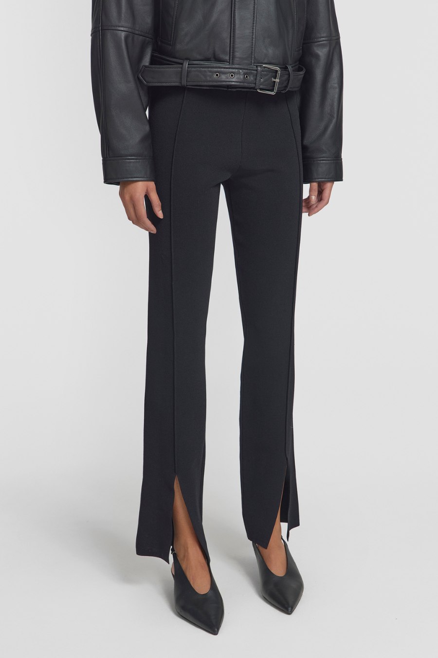 A foundational staple, the Puma Split Pant is fully fashioned in a black milano stitch knit. Designed with a grown-on waist and effortless pull-on fit, it features front hem splits and a soft kick flare silhouette. Balancing comfort and sophistication, style it with the Mogul Blazer for a considered look that fuses modern tailoring with timeless appeal.