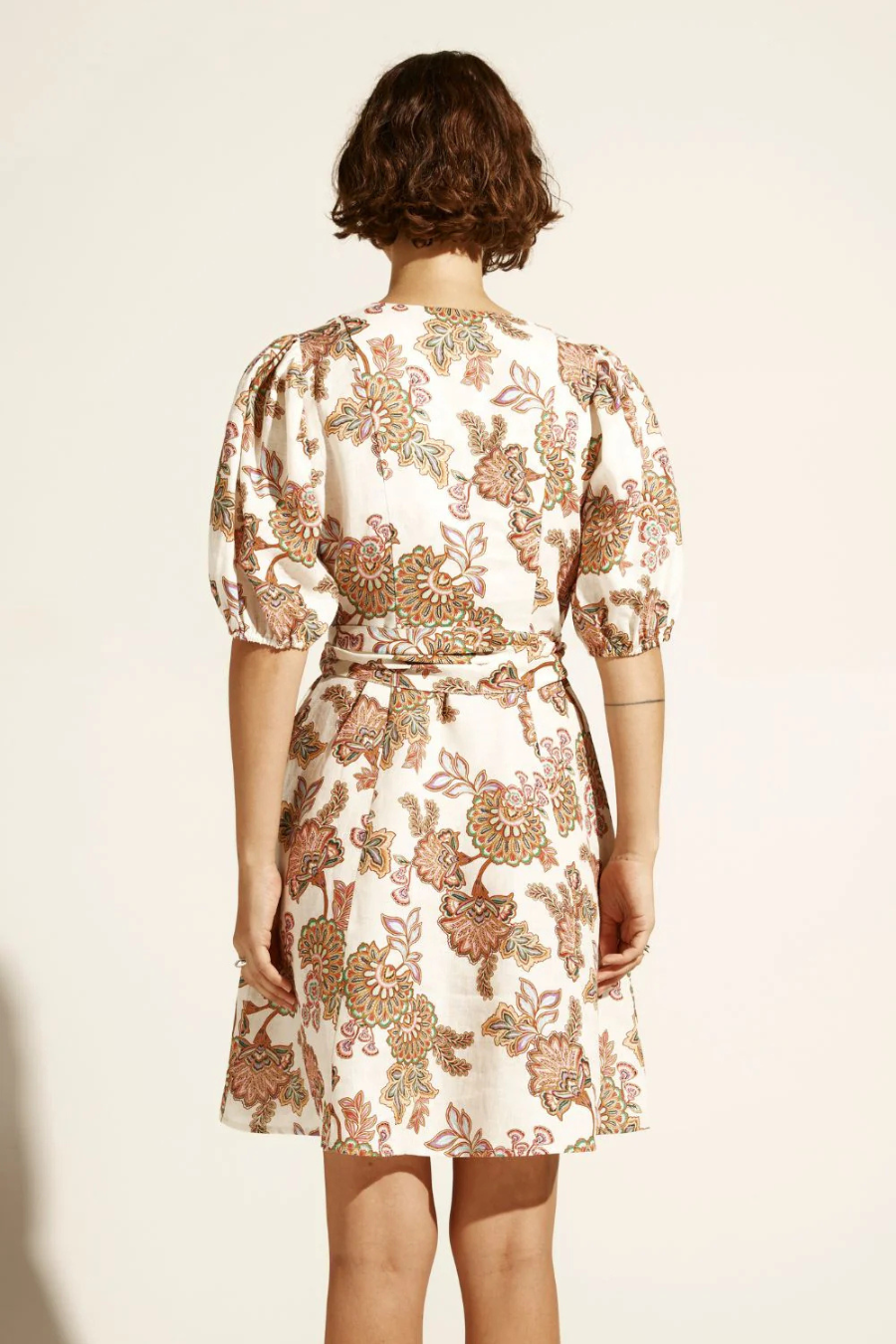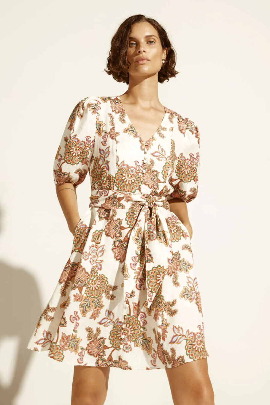The quota is the quintessential choice for resort dressing, blending enduring appeal with chic vacation style. a flattering v-neck and covered buttons leads into a fit and flare silhouette.