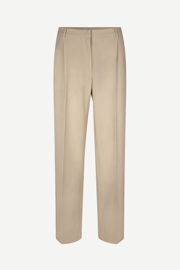 Relaxed fitting tailored trousers with front pleats. Belt loops, back welt pocket detail. Polyester and recycled polyester blended fabric with added stretch.