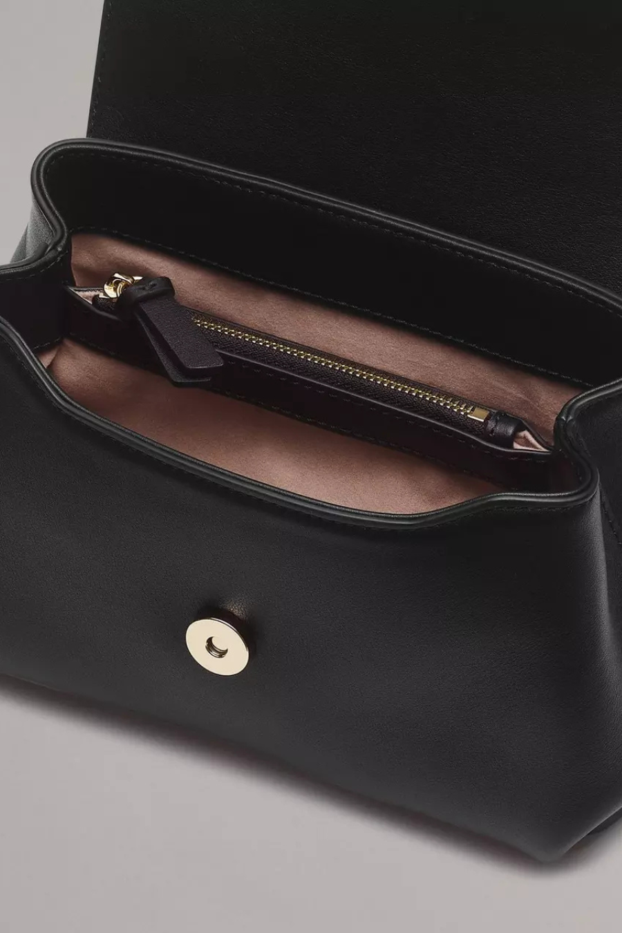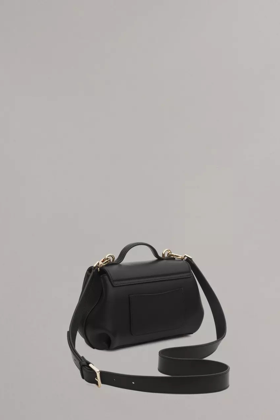 A delightful, compact version of the quintessential flap bag. Crafted from smooth Italian-milled leather, this petite, structured style is punctuated by sleek metal bars and contrast edge paint. The top handle and adjustable strap allow you to carry it by hand or over your shoulder, while the back patch pocket offers quick access to cards.