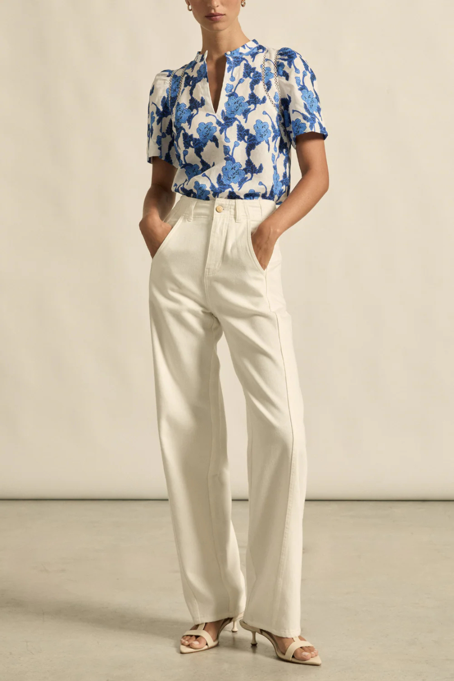 A quietly elevated blouse, the recollect top combines tailoring with soft details.
