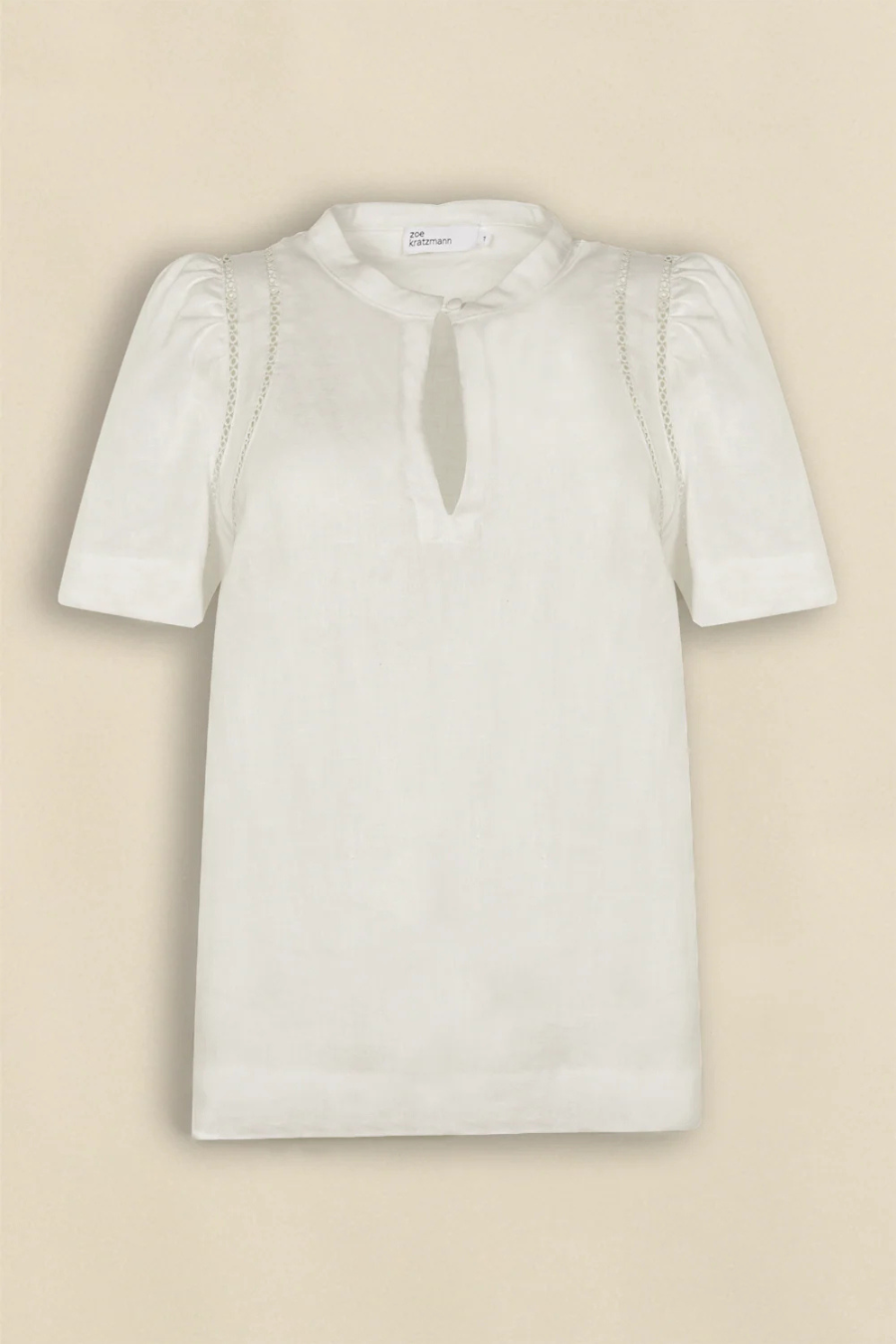 A quietly elevated blouse, the recollect top combines tailoring with soft details.