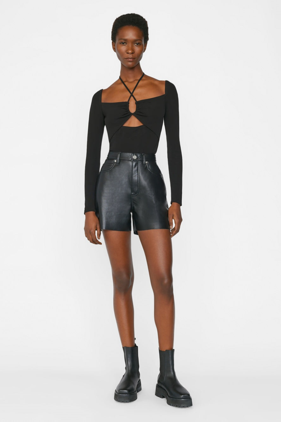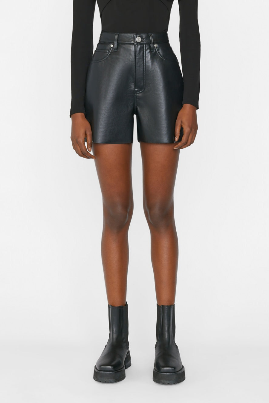 Done in soft Noir recycled leather with a high-rise waist, flattering A-line silhouette, and a classic 5-pocket design, Le Super High Short is the versatile luxury piece every wardrobe needs. Comfortable enough to run around in all day, sophisticated with a blazer, chic and alluring for a night out—the styling opportunities are endless.