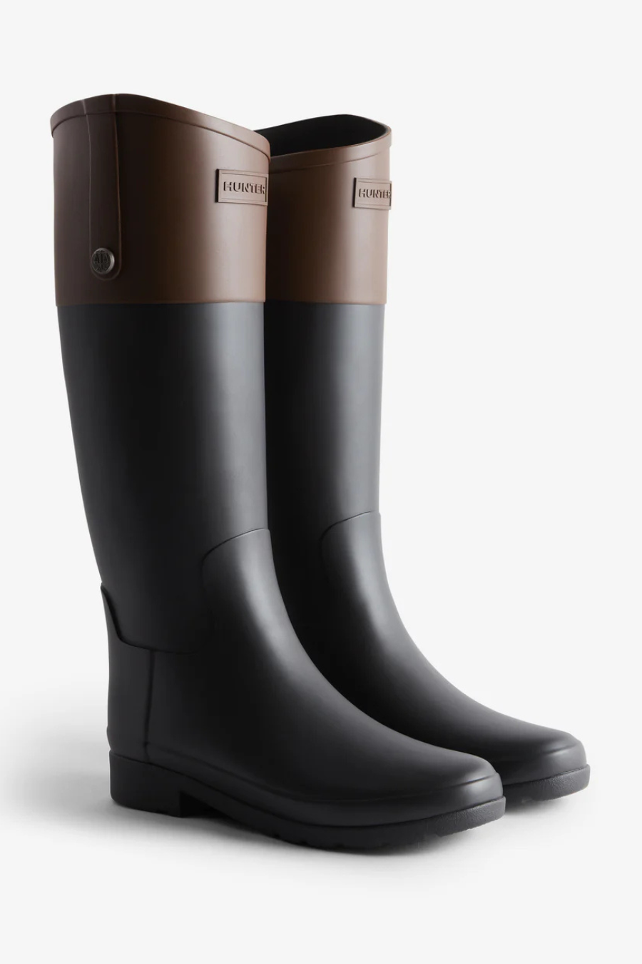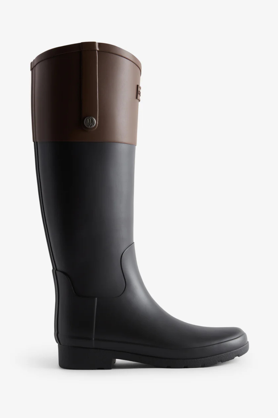 With a slimmer fit and accent detailing, the Refined Tall Riding Wellington boot features a tailored topline, and is constructed from fewer rubber layers for a more lightweight feel. Handcrafted and fully waterproof, this women's equestrian boot with a matte two-tone finish seamlessly blends practicality and style for a chic riding look.