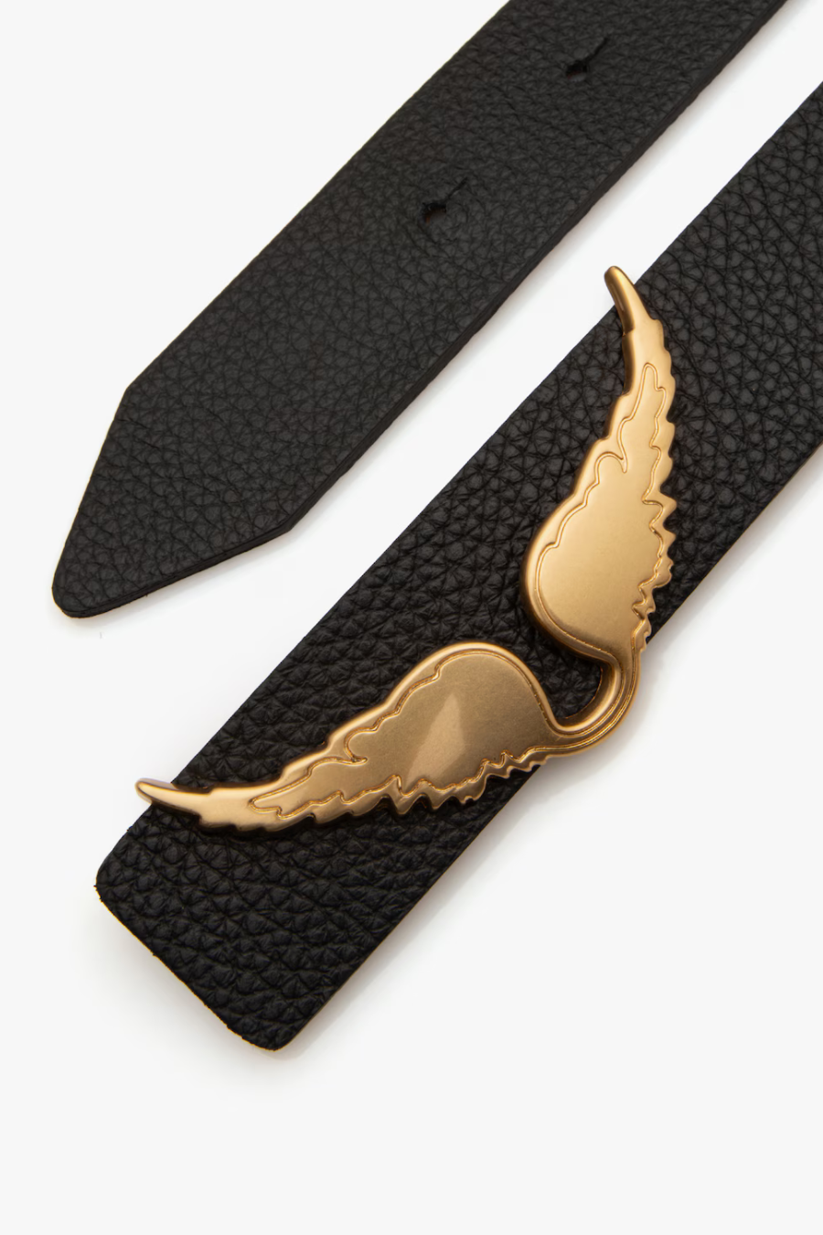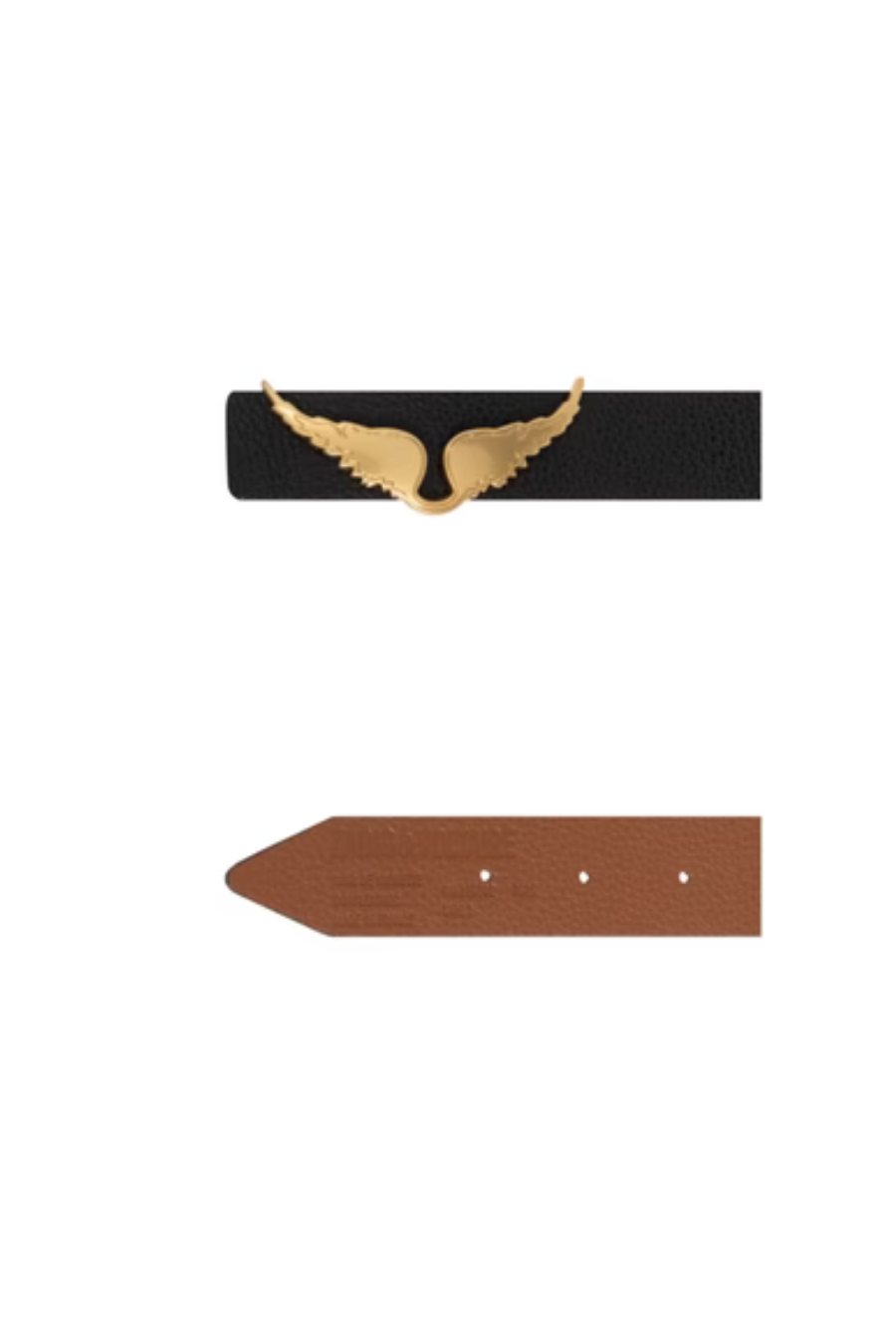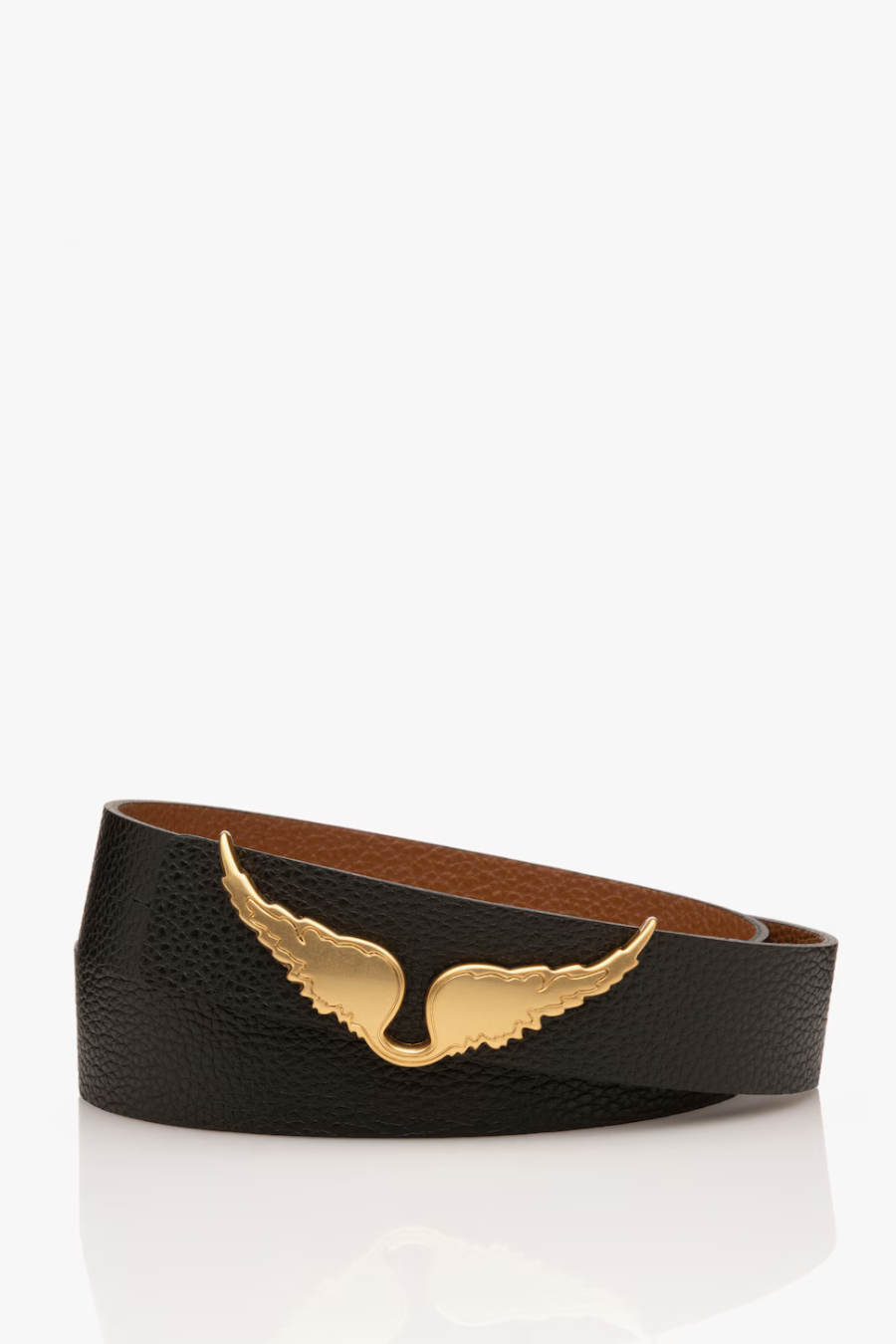 Women's reversible belt in black grained leather with a tan brown interior made to be worn either way. Match with our favourite Zadig Rocky or Rock with you bag in black