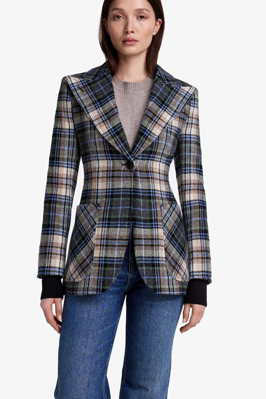 Rib Cuff Birkin Blazer Multi Plaid With Black
