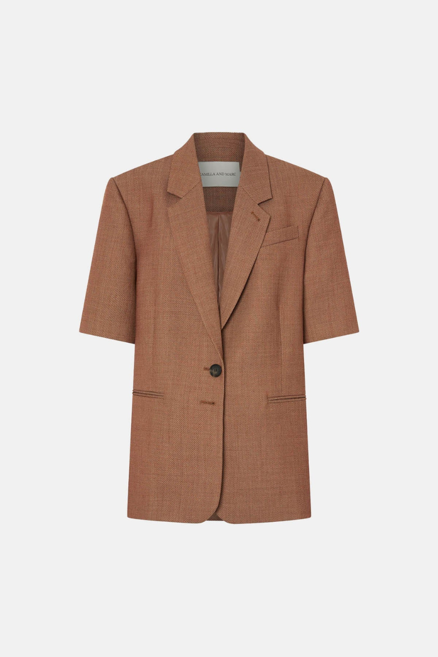 CAMILLA AND MARC Rio Short Sleeve Blazer in Caramel Brown.