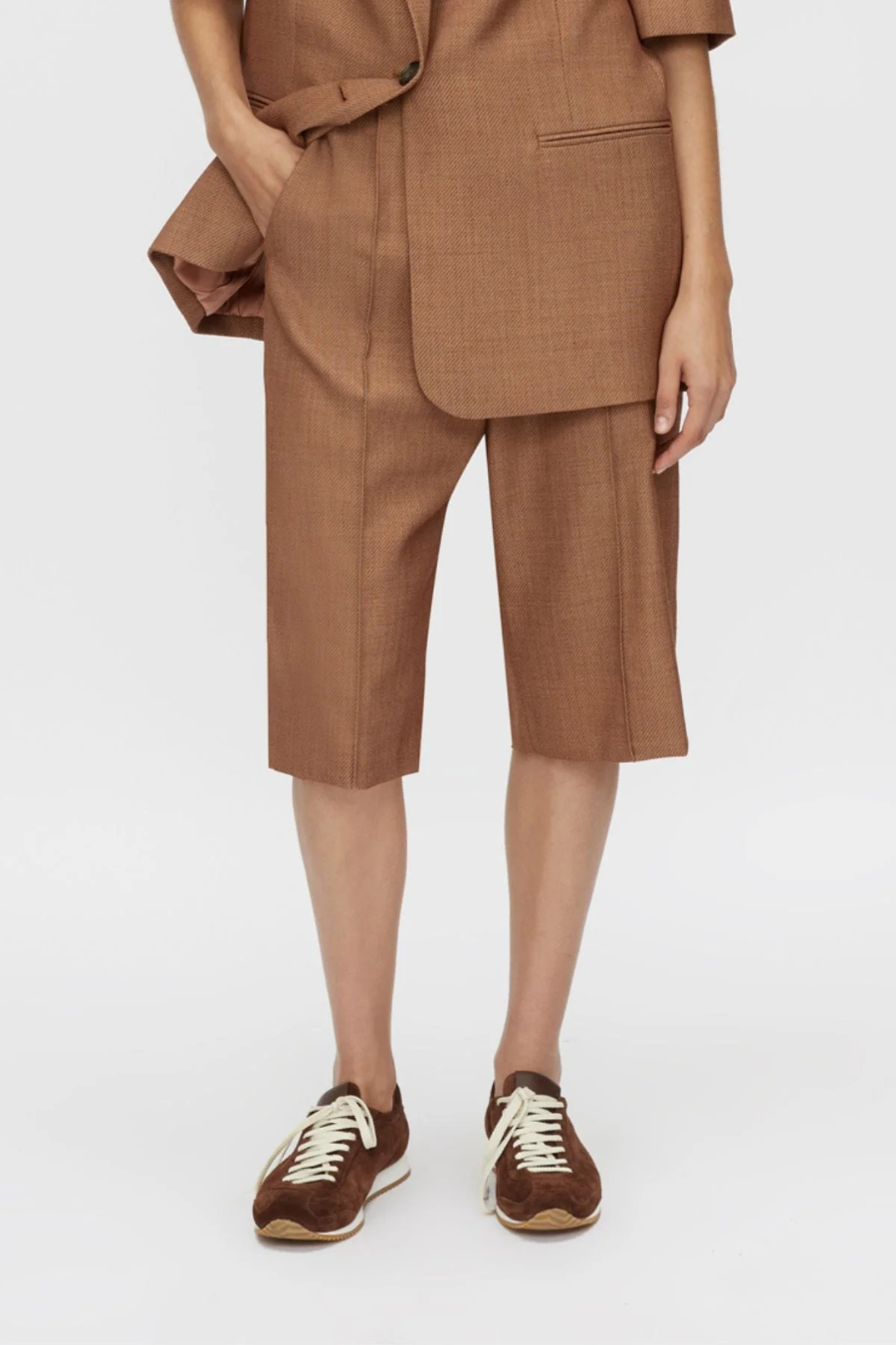 The Rio Short is crafted from a wool blend in a tailored Bermuda silhouette. This short features side seam pockets and front fly with zip, hook, and bar, and a jigger button closure.