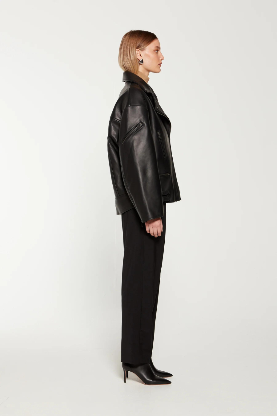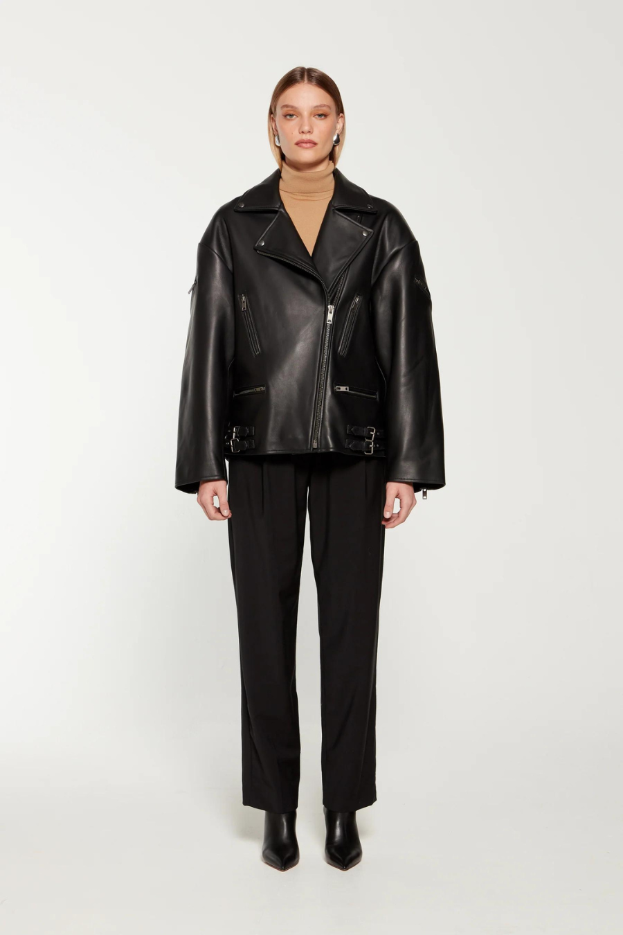 This generously cut jacket with drop shoulders and classic biker styling falls at a flattering length on the lower hip. As stylish as it is practical this is the jacket that will keep you warm in the winter and the chill off on those surprisingly cold summer nights. Featuring fabulous details, including a double buckle cinch belt and generous collar, this coat looks great worn zipped up or loose and casual.